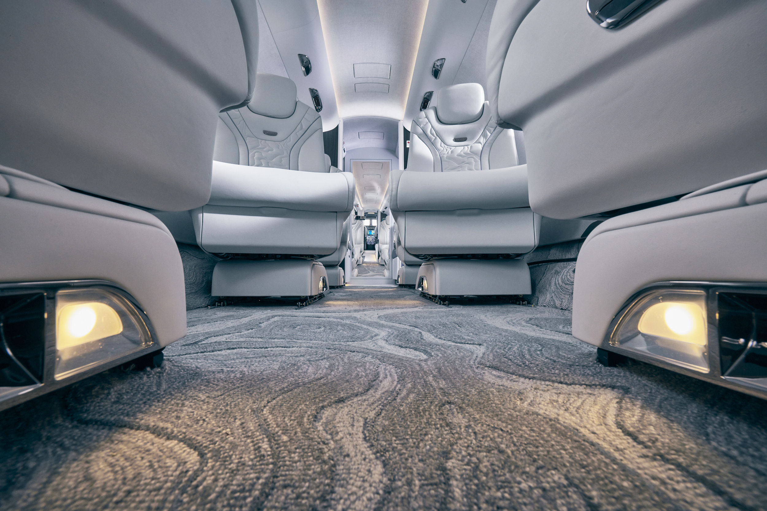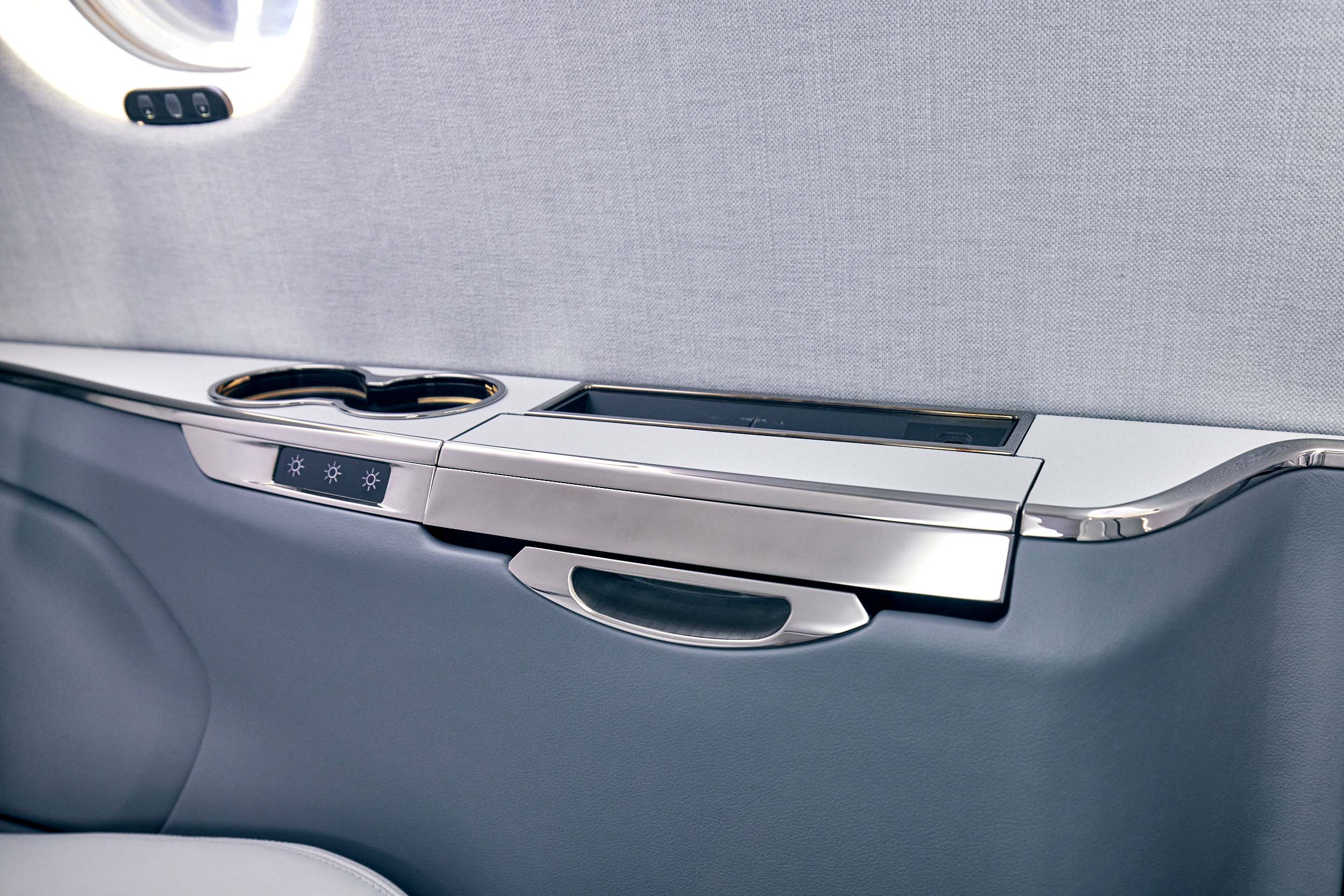 Дополнительный комфорт в полете обеспечивают электрошторки на иллюминаторах, управление освещением, кондиционированием и развлекательной системой через приложение в смартфоне, а также шесть портов для беспроводной зарядки гаджетов и 19 USB-портов по всему салону. Wi-Fi на борту усовершенствован, а акустическая система от Bongiovi входит в базовую комплектацию.