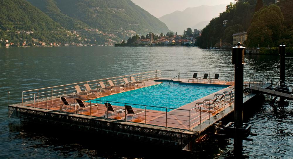 - Открытый подогреваемый бассейн на понтоне в озере (летом)