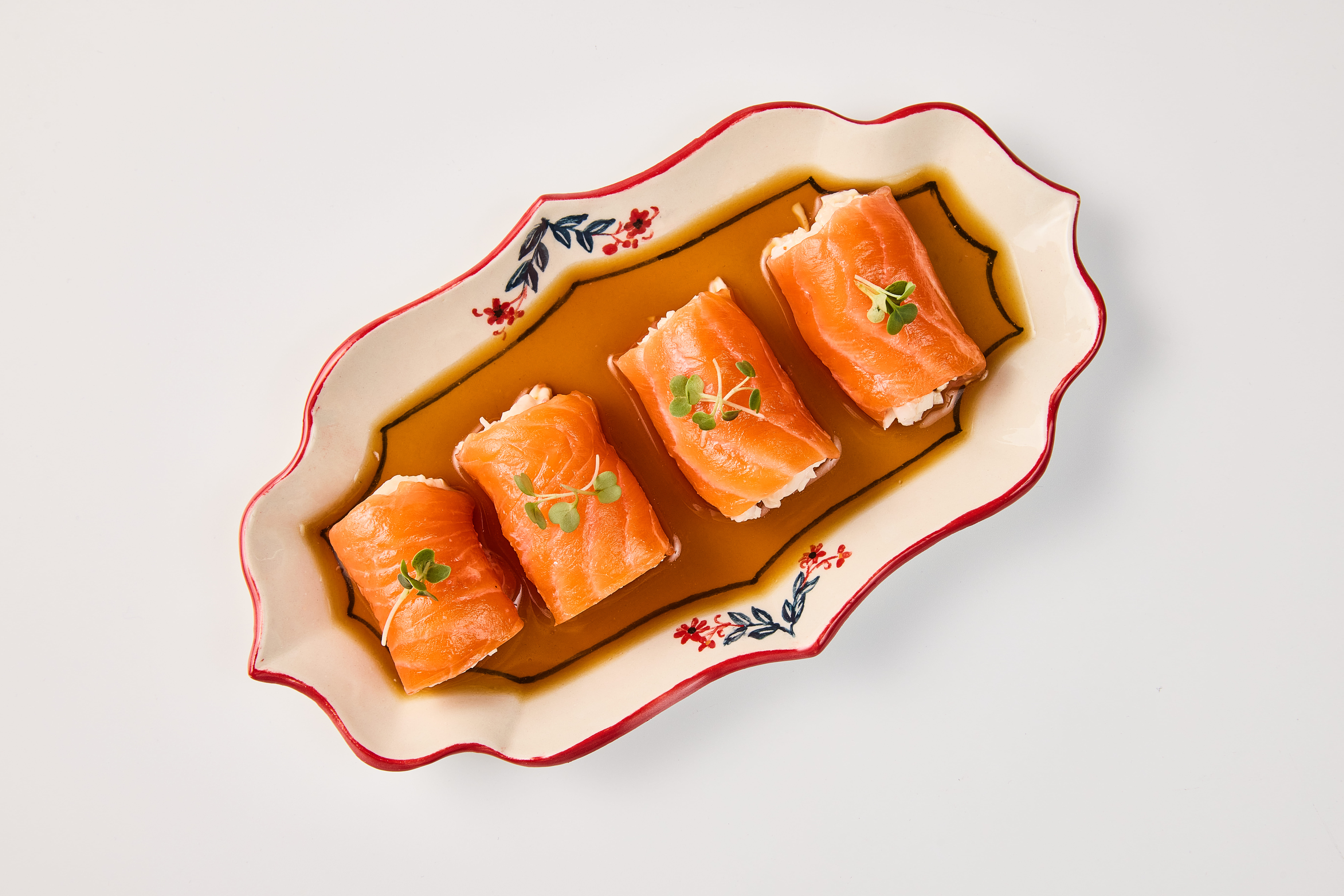 рулетики из лосося с камчатским крабом и соусом понзу