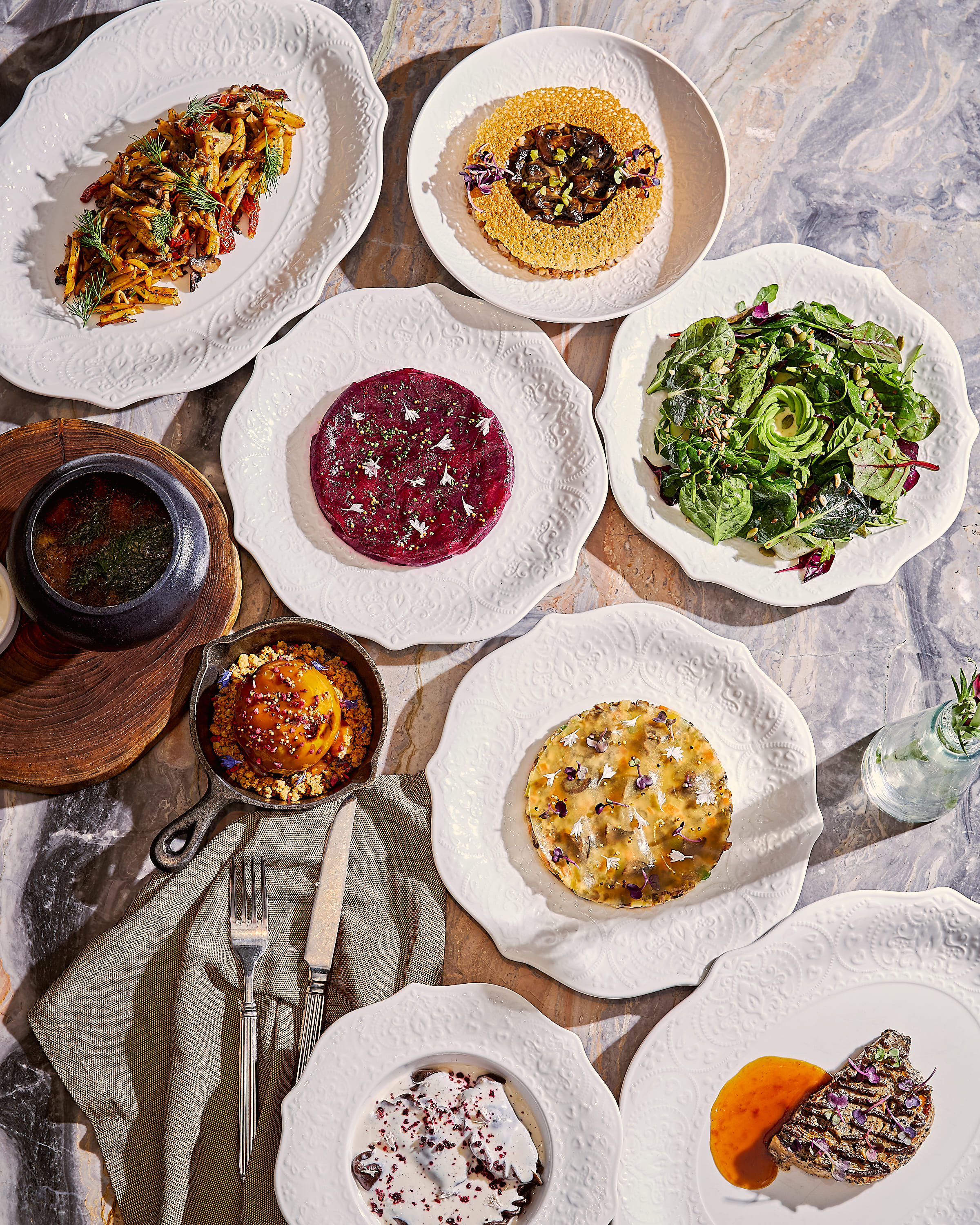 В ресторане Александра Раппопорта «ERWIN.РекаМореОкеан» до окончания Великого поста действует специальное меню. Для него шеф-повар Андрей Палесика и шеф-кондитер Татьяна Маркина подготовили разнообразные блюда.
