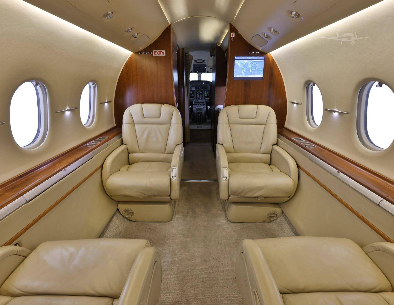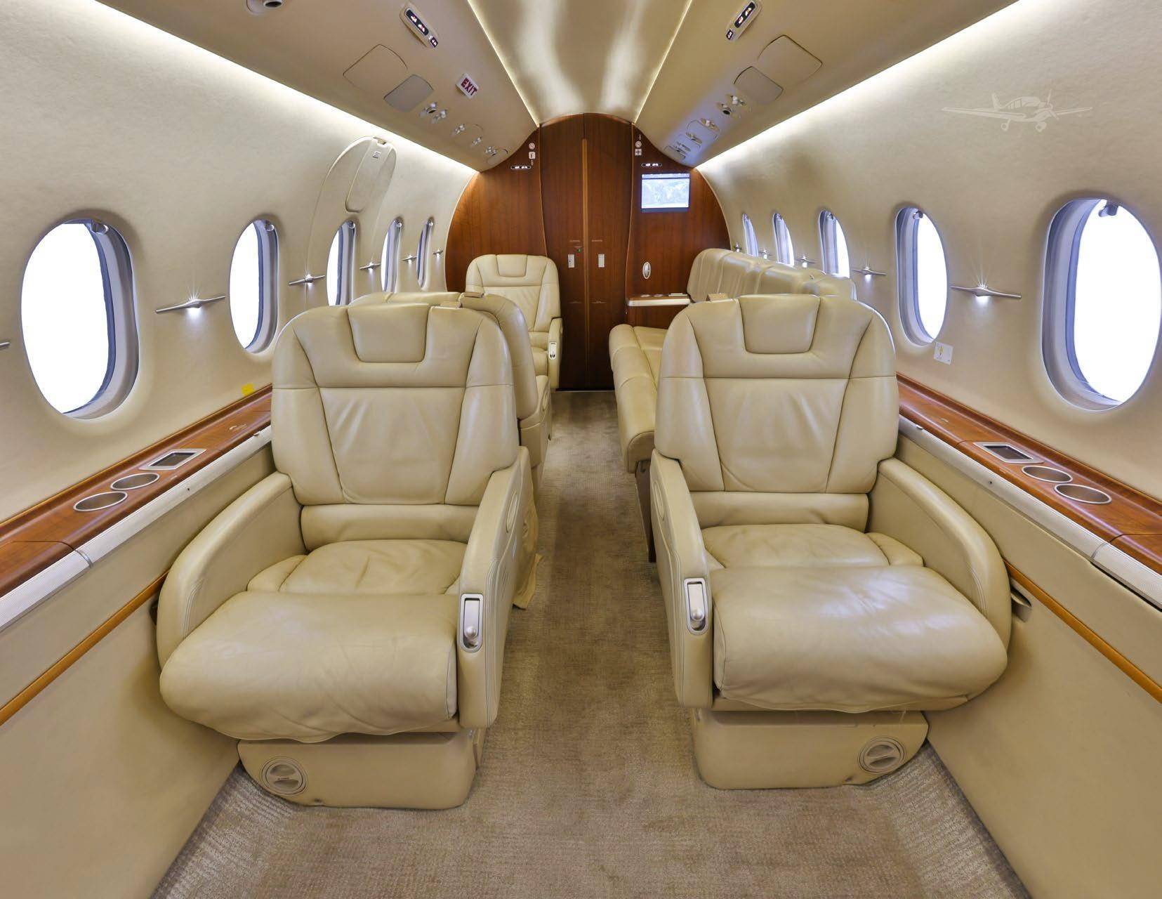 Салон стандартной конфигурации вмещает 8 пассажиров, в корпоративной версии число кресел может быть увеличено до 12. В салоне есть вместительный гардероб, отлично оборудованная кухня и туалетная комната. Кроме того, на борту воздушного судна предусмотрено место для багажного отделения объемом 2,52 куб. м. Во время полета доступ к багажу осуществляется через пассажирский салон, а для его загрузки или выгрузки на земле используется дополнительная внешняя дверь.