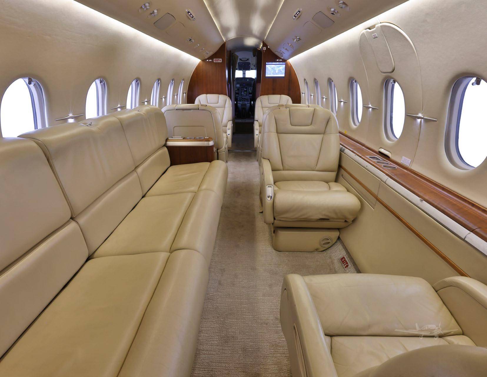 Салон стандартной конфигурации вмещает 8 пассажиров, в корпоративной версии число кресел может быть увеличено до 12. В салоне есть вместительный гардероб, отлично оборудованная кухня и туалетная комната. Кроме того, на борту воздушного судна предусмотрено место для багажного отделения объемом 2,52 куб. м. Во время полета доступ к багажу осуществляется через пассажирский салон, а для его загрузки или выгрузки на земле используется дополнительная внешняя дверь.