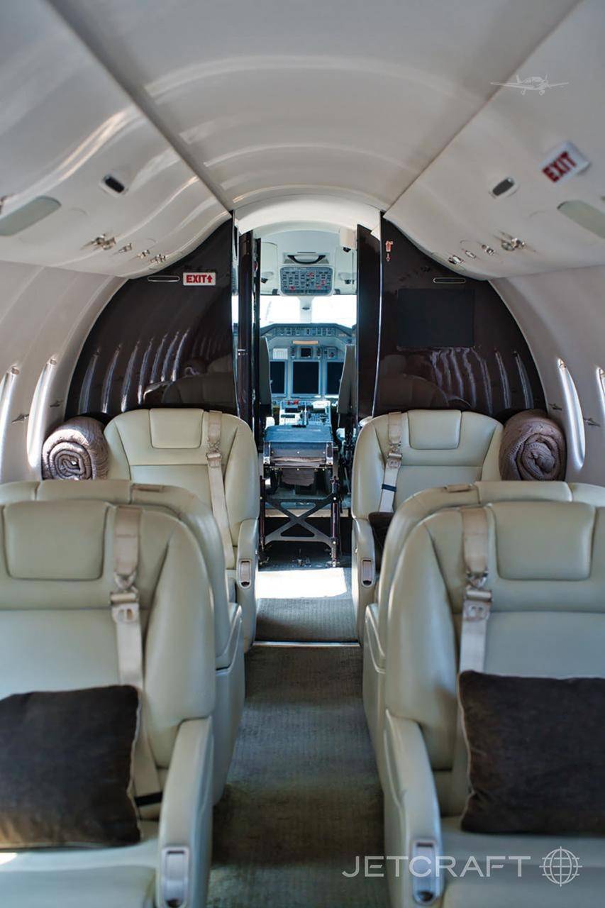 Салон стандартной конфигурации вмещает 8 пассажиров, в корпоративной версии число кресел может быть увеличено до 12. В салоне есть вместительный гардероб, отлично оборудованная кухня и туалетная комната. Кроме того, на борту воздушного судна предусмотрено место для багажного отделения объемом 2,52 куб. м. Во время полета доступ к багажу осуществляется через пассажирский салон, а для его загрузки или выгрузки на земле используется дополнительная внешняя дверь.