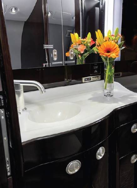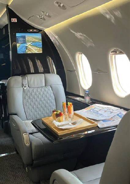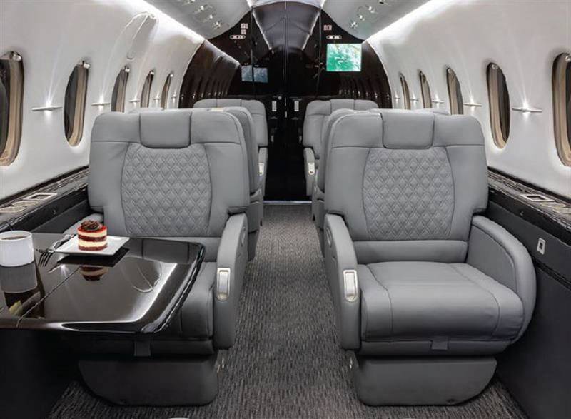 Салон стандартной конфигурации вмещает 8 пассажиров, в корпоративной версии число кресел может быть увеличено до 12. В салоне есть вместительный гардероб, отлично оборудованная кухня и туалетная комната. Кроме того, на борту воздушного судна предусмотрено место для багажного отделения объемом 2,52 куб. м. Во время полета доступ к багажу осуществляется через пассажирский салон, а для его загрузки или выгрузки на земле используется дополнительная внешняя дверь.