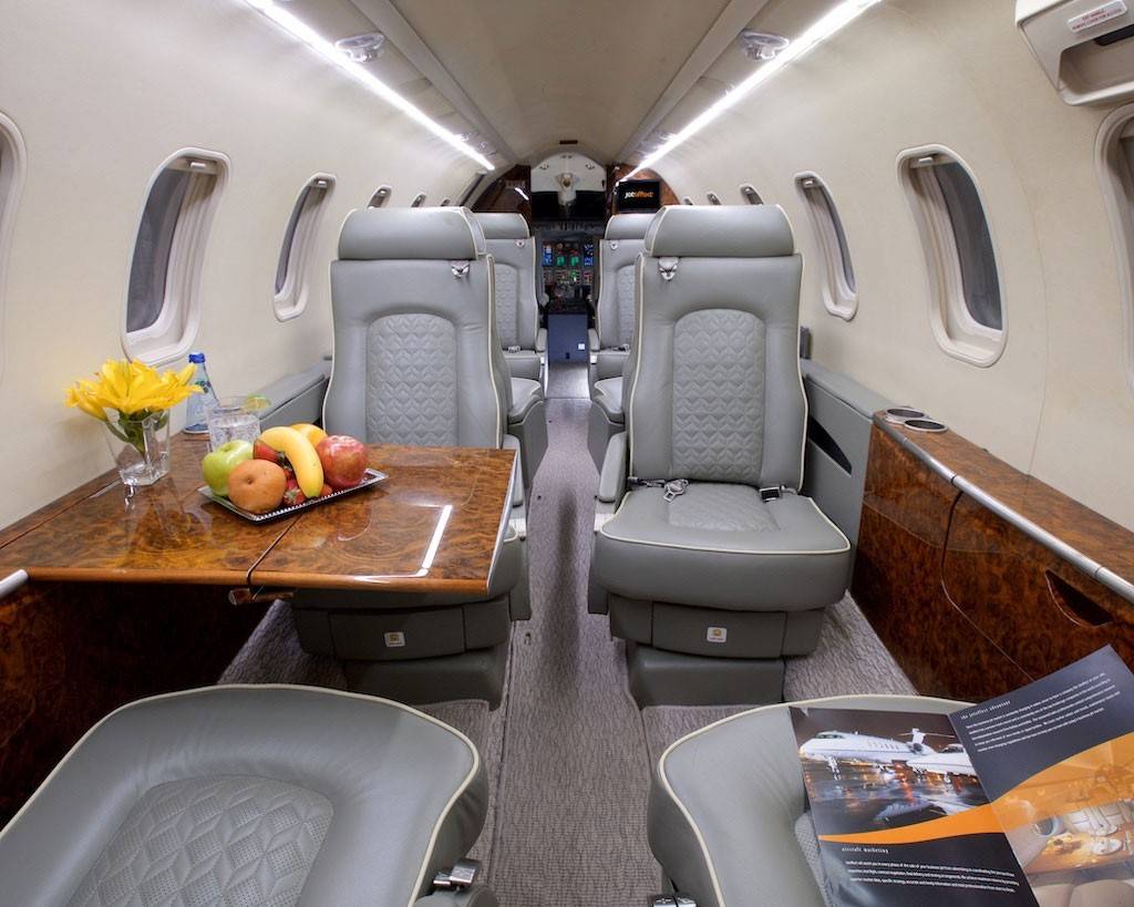 Салон самолета также не оставляет равнодушным. Круглый интерьер Bombardier Learjet 45XR был разработан специально, чтобы снабдить функциональность и комфорт при перелетах на дальние дистанции.