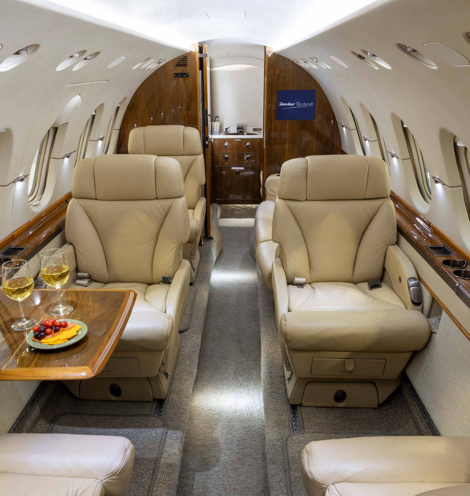 Современные Hawker 850XP оборудуются по последнему слову техники. Здесь предусмотрены удобные кресла, две гардеробные зоны, зона для кухни, багажное отделение с доступом из салона. Самолет обладает просторным салоном, хорошей дальностью полета. Самолеты бизнес-авиации линейки Hawker отличаются превосходными летными характеристиками, легкостью пилотирования, способность взлетать с коротких взлетно-посадочных полос.