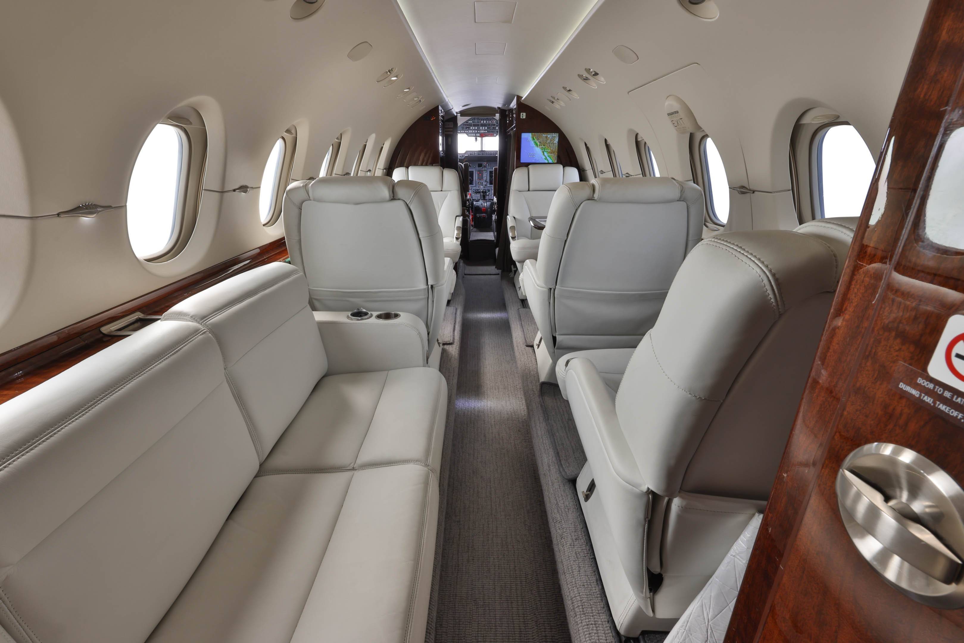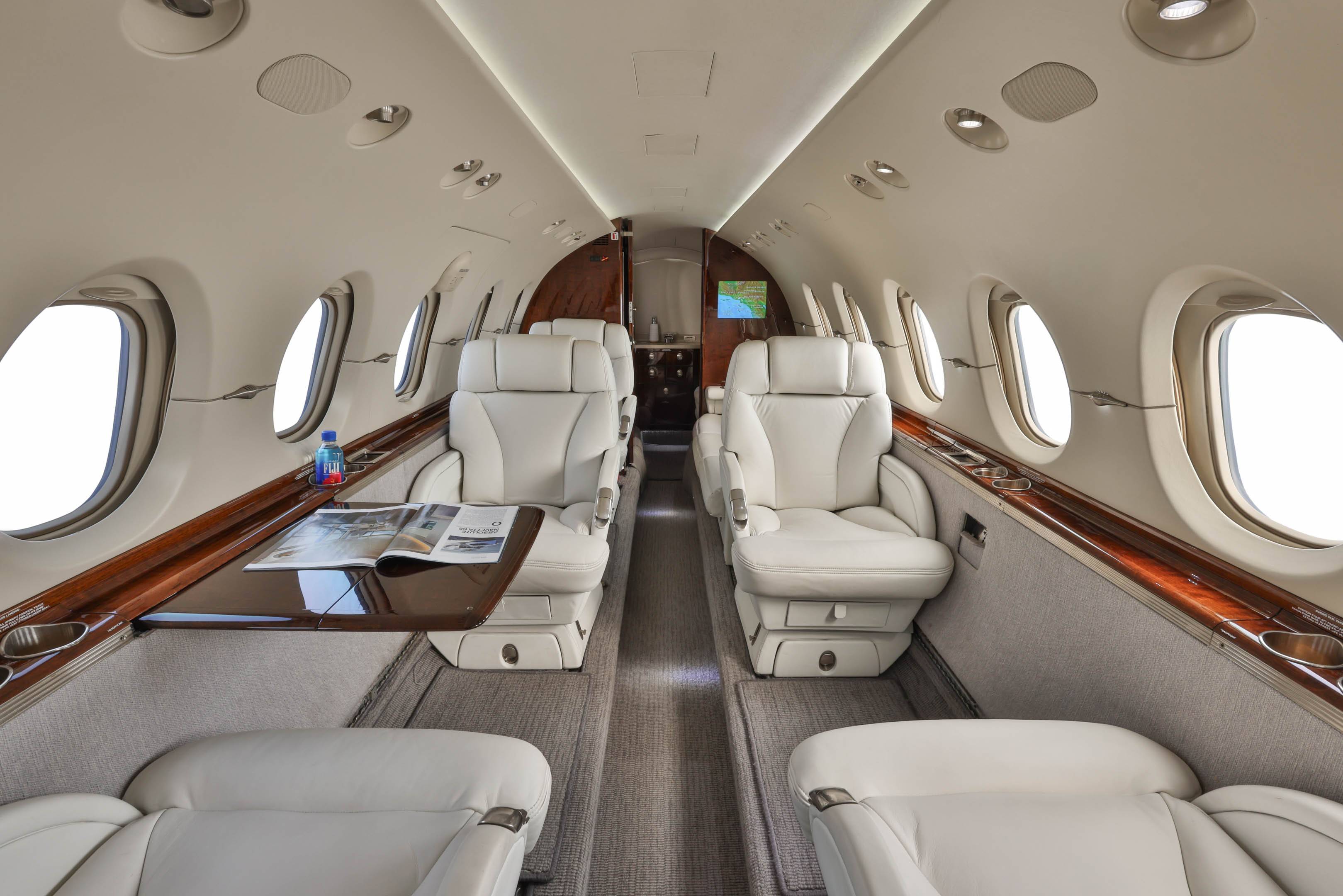 Салон Hawker 900XP предоставляет большое пространство для комфортного размещения 8 пассажиров. Достаточно высокий потолок 1,75 м и углубление в проходе позволяют свободно передвигаться по салону во время полета. Hawker 900XP имеет полноценную кухню, туалет и гардероб. Вместительное багажное отделение расположено в хвостовом отсеке и доступно из салона.