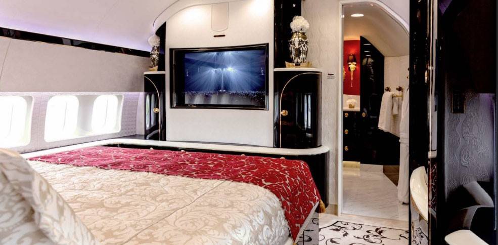 Владельцы могут изменять конфигурацию салона в соответствии со своими потребностями. На борту достаточно места, чтобы создать комфортные условия как для работы, так и для отдыха. Интерьер самолета создается индивидуально для каждого заказчика. В салоне можно разместить не только просторную гостиную с массивной мебелью и деловой кабинет с большим рабочим столом, но и спальню с «королевской» кроватью, вместительное багажное отделение, удобную функциональную кухню и отдельный санузел с полноразмерной душевой кабиной. Наличие на борту спутниковой системы связи дает возможность пассажирам независимо от местонахождения самолета поддерживать деловые контакты в любой точке планеты.