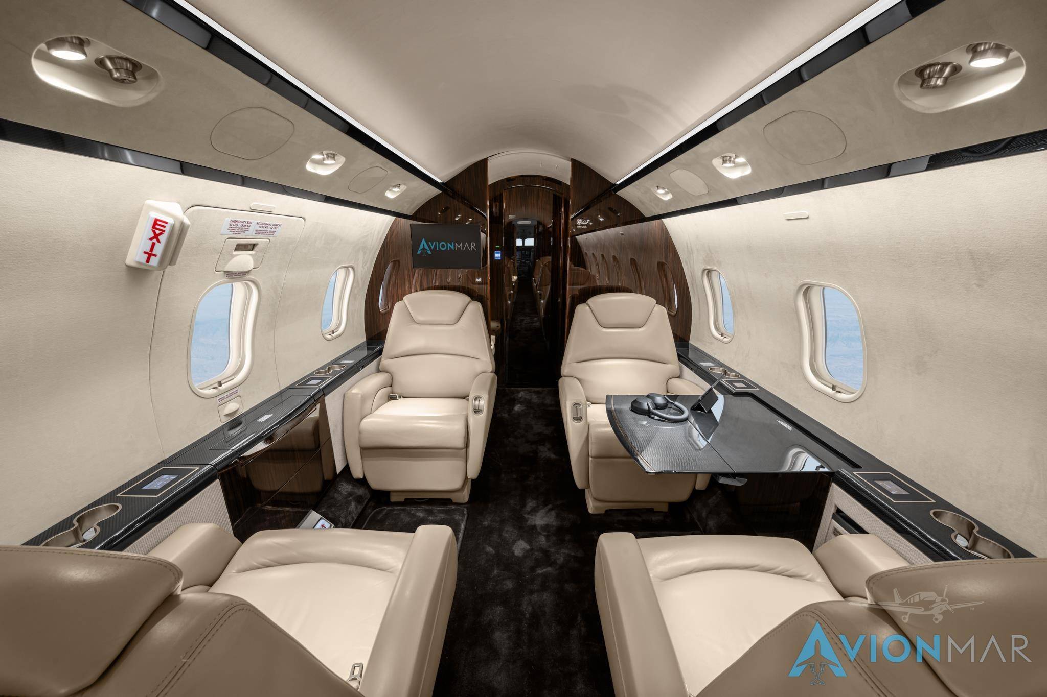 Бизнес-джет получил известность как наиболее маневренный, вместительный и надежный самолет деловой авиации. Он обладает рядом преимуществ: большая крейсерская скорость – порядка 850 км/ч, экономичный расход топлива, широкий салон, стильный интерьер, кондиционеры, система управления вибрацией, спутниковая связь, а также CD/DVD-проигрыватель и система Airshow. Кроме того, на самолете установлена современная авионика Rockwell Collins Pro Line 21.