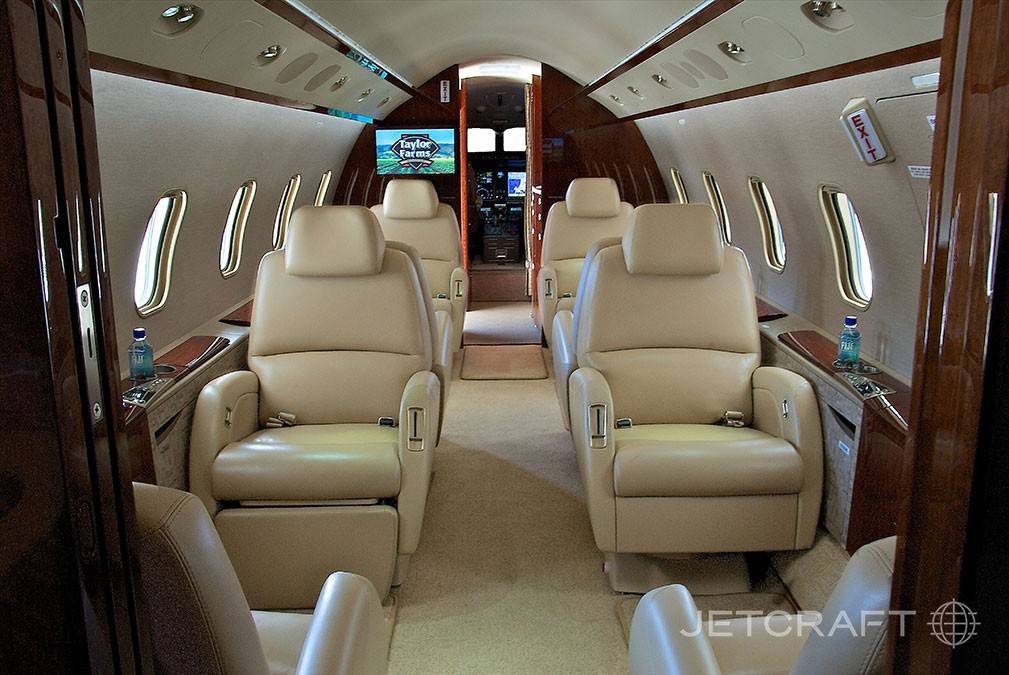 Бизнес-джет получил известность как наиболее маневренный, вместительный и надежный самолет деловой авиации. Он обладает рядом преимуществ: большая крейсерская скорость – порядка 850 км/ч, экономичный расход топлива, широкий салон, стильный интерьер, кондиционеры, система управления вибрацией, спутниковая связь, а также CD/DVD-проигрыватель и система Airshow. Кроме того, на самолете установлена современная авионика Rockwell Collins Pro Line 21.