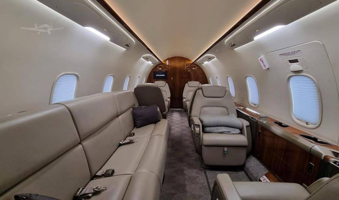 Салон Challenger 350 просторнее, чем у близкого по дальности полета Legacy 500 и высокоскоростного Citation X. Его площадь составляет порядка 13,6 м2, а высота потолка (185 см) позволяет пассажирам стоять в полный рост.