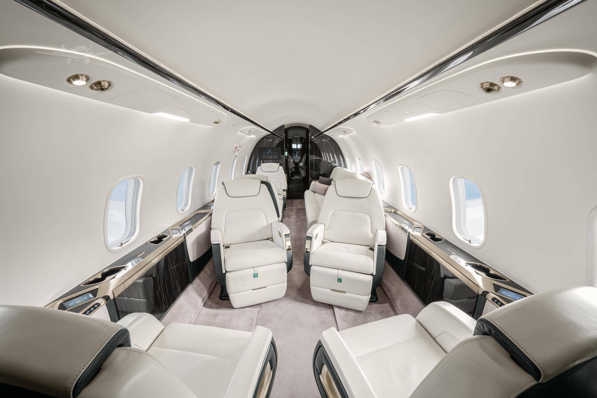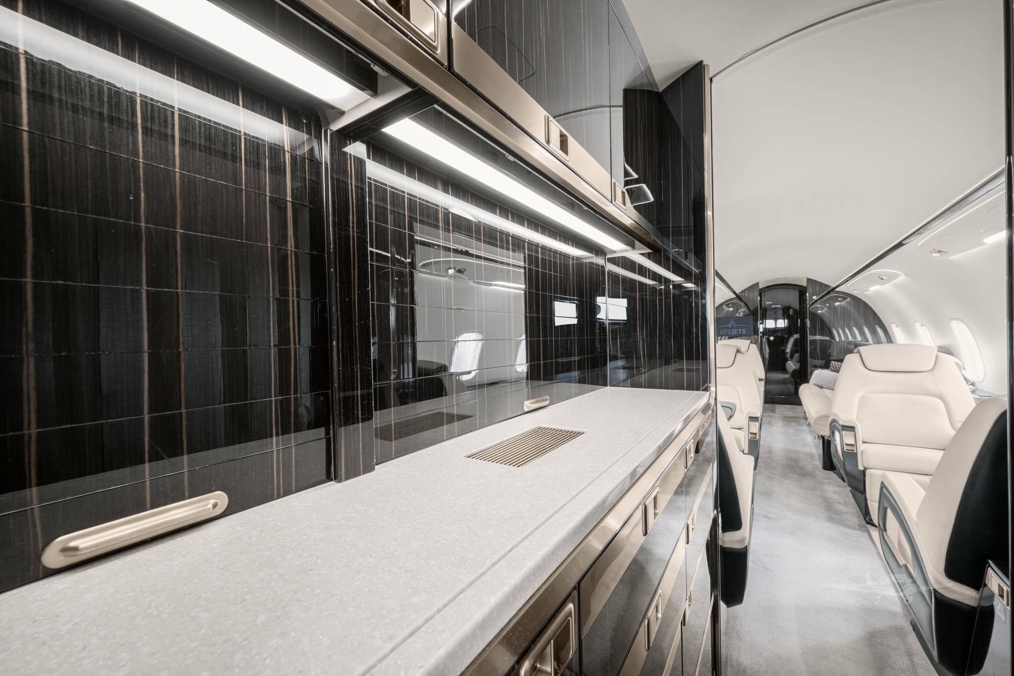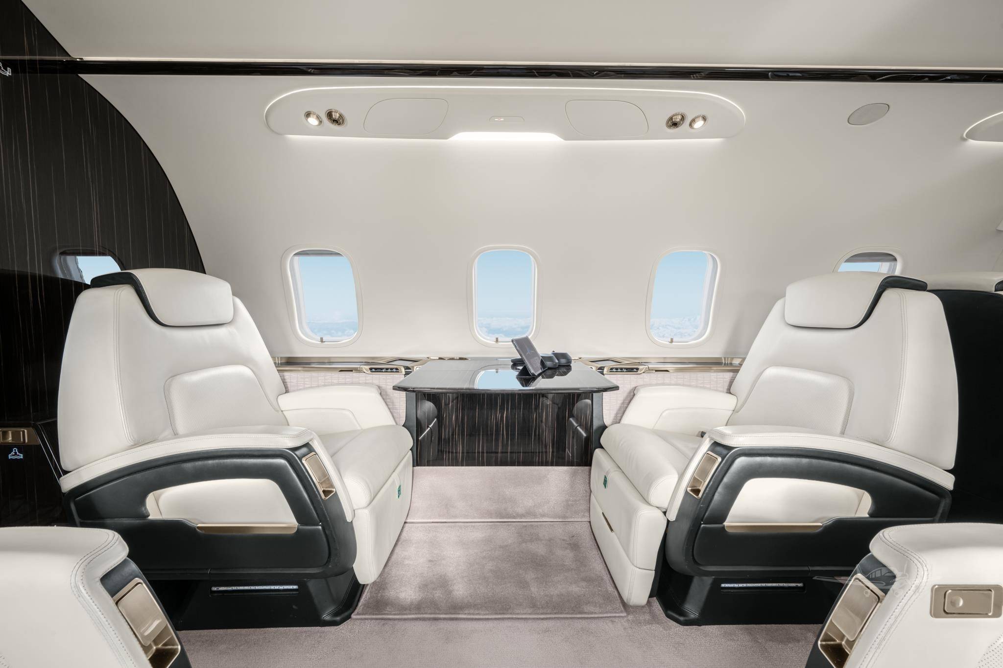 Салон Challenger 350 просторнее, чем у близкого по дальности полета Legacy 500 и высокоскоростного Citation X. Его площадь составляет порядка 13,6 м2, а высота потолка (185 см) позволяет пассажирам стоять в полный рост.