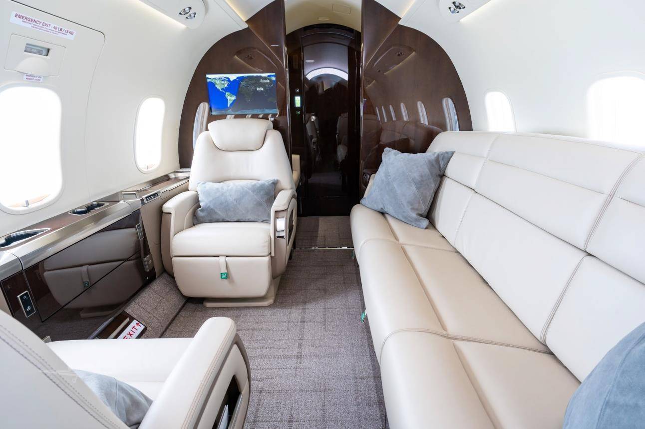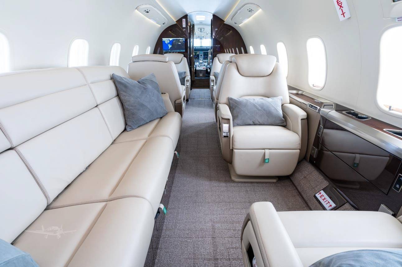Салон Challenger 350 просторнее, чем у близкого по дальности полета Legacy 500 и высокоскоростного Citation X. Его площадь составляет порядка 13,6 м2, а высота потолка (185 см) позволяет пассажирам стоять в полный рост.