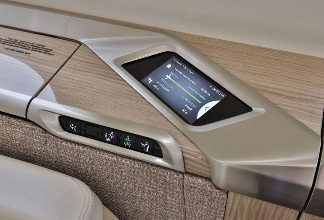 Система управления функциями салона обновлена — теперь настройками можно управлять на сенсорных панелях или прямо со своего смартфона. Большие и удобные кресла при необходимости раскладываются в спальные места. Между ними остается достаточно широкий проход.