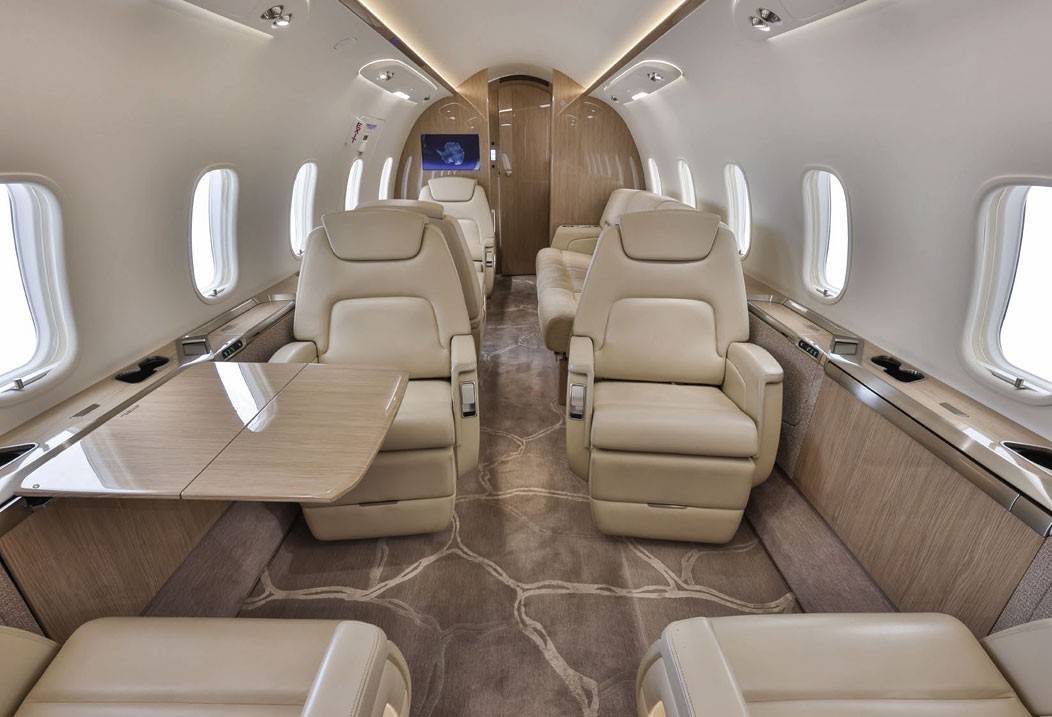 Салон Challenger 350 просторнее, чем у близкого по дальности полета Legacy 500 и высокоскоростного Citation X. Его площадь составляет порядка 13,6 м2, а высота потолка (185 см) позволяет пассажирам стоять в полный рост.