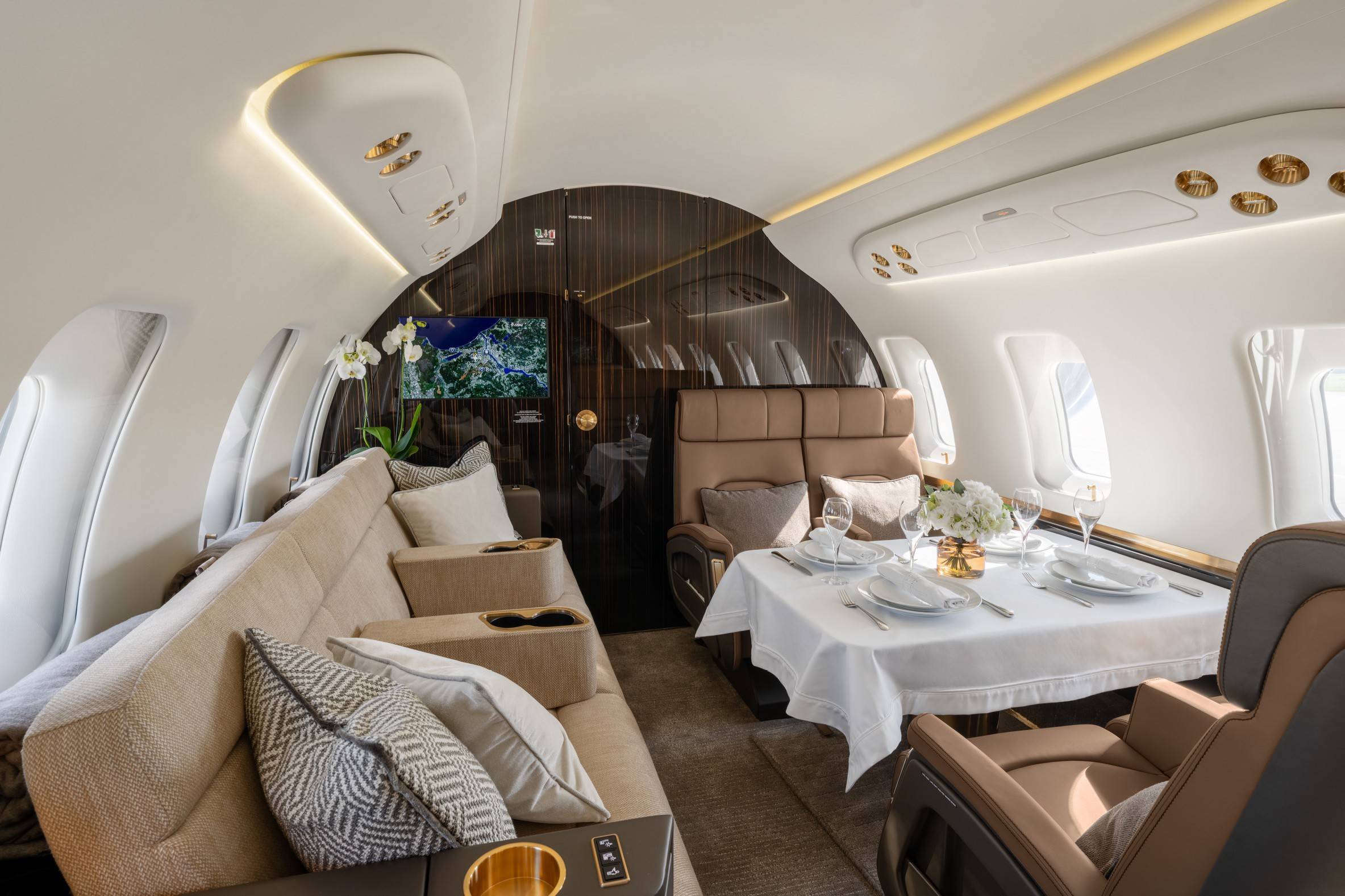 пространства. Сам интерьер воплощает с десяток пожеланий потенциальных владельцев, выявленных в ходе маркетинговых исследований. Например, иллюминаторы существенно больше и размещены на 6,5 см выше, что улучшает обзор из салона. Система управления освещением и другими параметрами салона, основанная на локальной сети Ethernet, стала более простой и надежной. Среди приятных моментов — модернизированная бортовая кухня, видеомониторы с большей диагональю, светодиодная подсветка, более устойчивые выдвижные столики, хорошо продуманный