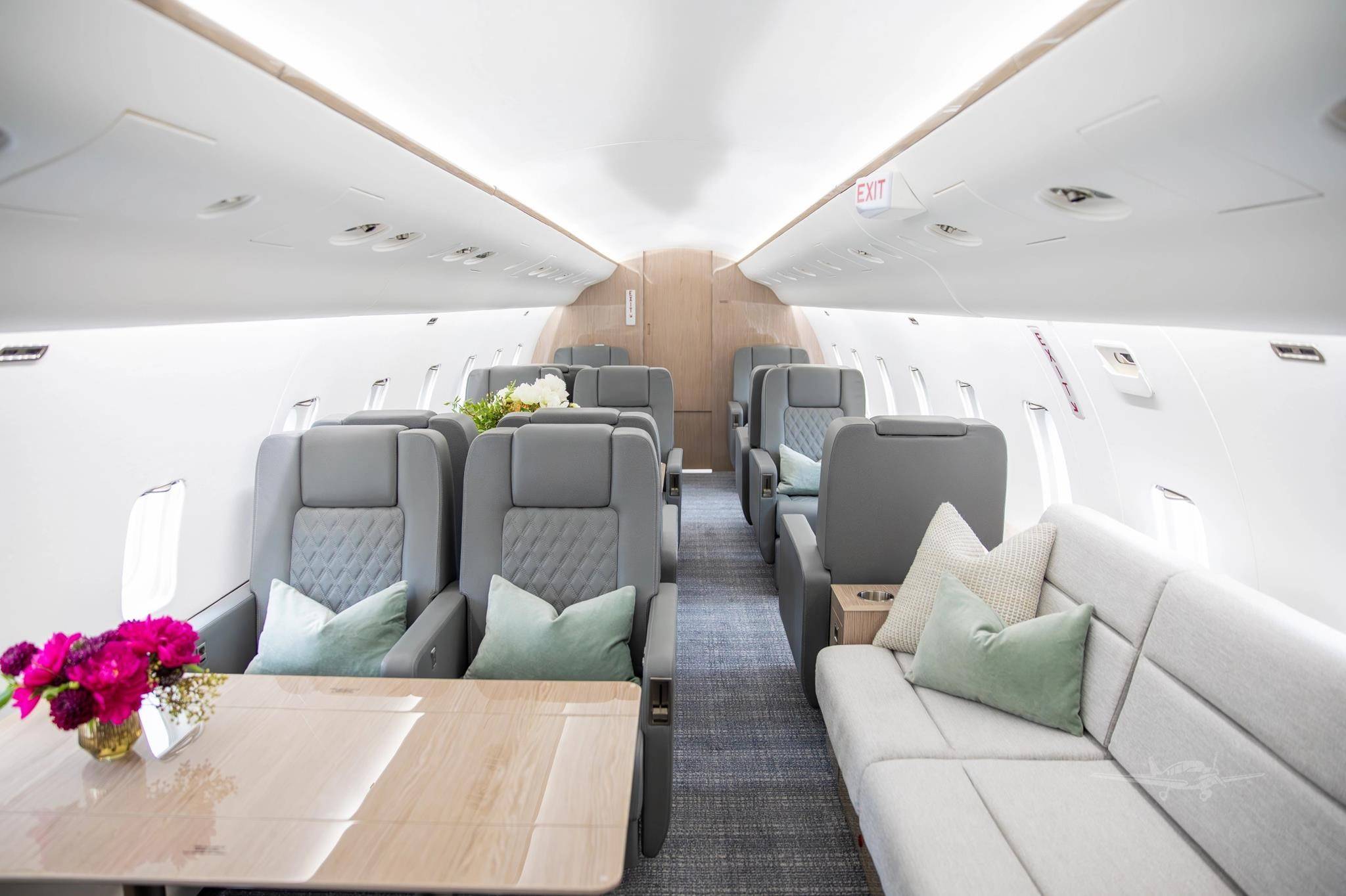 Пассажирский салон Challenger 850 по своим размерам почти идентичен салону Global 6000, с той лишь разницей, что это бывший региональный самолет, так что по шумоизоляции и давлению в салоне он нынешнему флагману Bombardier все же уступает. Самолет выпускается в версии корпоративного шаттла для перевозки больших групп сотрудников, правительственных делегаций. Также можно заказать VIP-конфигурацию, рассчитанную на больший комфорт меньшего числа пассажиров. Различные конфигурации салона включают рабочую зону с мини-конференц-залом. Для отдыха на борту предусмотрен трехместный диван и две пары кресел, расположенных друг напротив друга, трансформирующиеся в полноценные