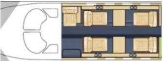 Просторная и хорошо освещенная каюта CJ1+ выполнена в новом стиле с использованием более дорогих и высококачественных материалов для отделки, ровный пол имеет углубление для удобного прохода и размещения пассажиров. Четыре кресла салона расположены напротив друг-друга, удобные столики могут аккуратно складываться в боковые стенки салона, когда ВЫ готовы отложить работу и отдохнуть. Citation CJ1+ имеет типичную компоновку малых бизнес-джетов, в салоне есть только самое необходимое для непродолжительного рейса, небольшая туалетная комната и гардероб расположены в задней части салона, багажное отделение находиться в хвостовой части самолета и не доступно из салона во время полета.