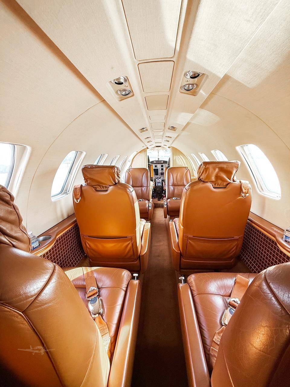 Просторная, хорошо освещенная каюта CJ2+ (длиннее чем кабина CJ1+ на 0.91 м) с передовой системой звукоизоляции, выполнена в новом стиле с использованием более дорогих и высококачественных материалов для отделки, ровный пол имеет углубление для удобного прохода и размещения пассажиров. В салоне самолета расположены 6 кресел, четыре из которых напротив друг-друга, удобные столики могут аккуратно складываться в боковые стенки салона, когда вы готовы отложить работу и отдохнуть. Citation CJ2+ имеет типичную компоновку малых бизнес-джетов, в салоне есть только самое необходимое для непродолжительного рейса, небольшая туалетная комната и гардероб расположены в задней части салона, багажное отделение находиться в хвостовой части самолета и не доступно из салона во время полета.