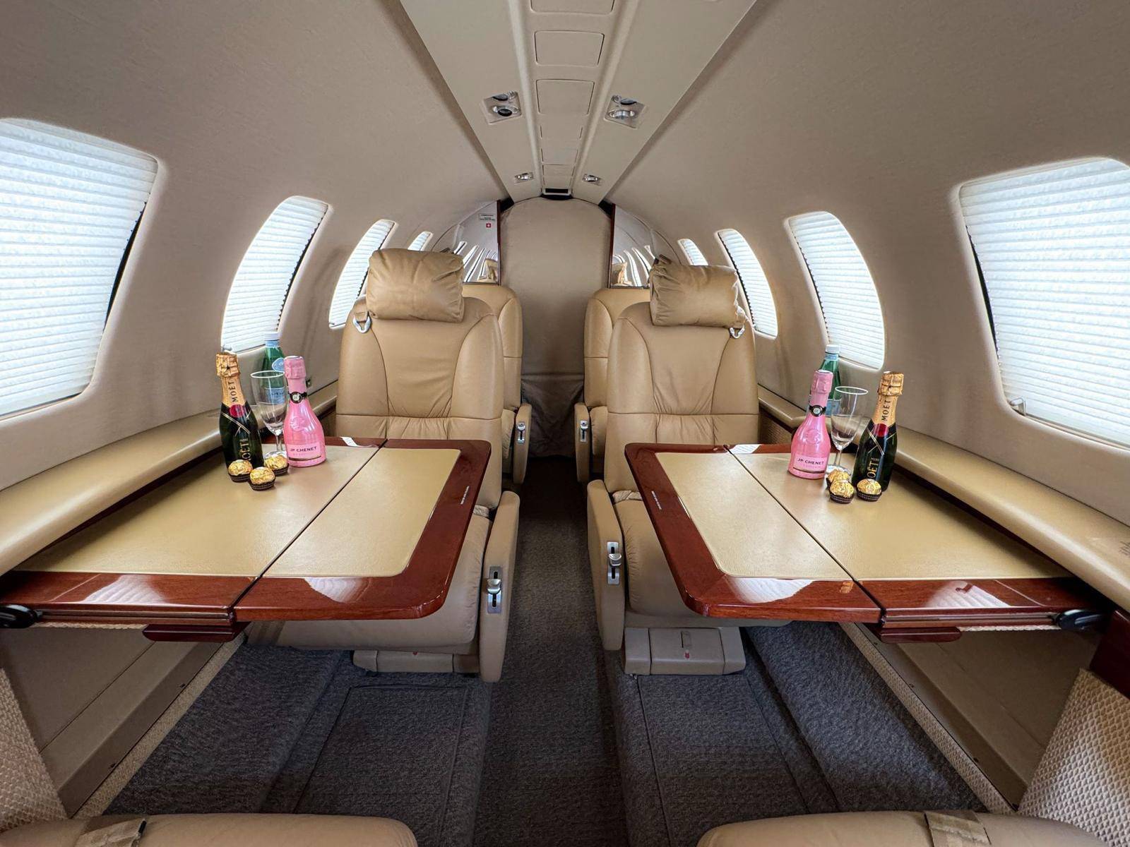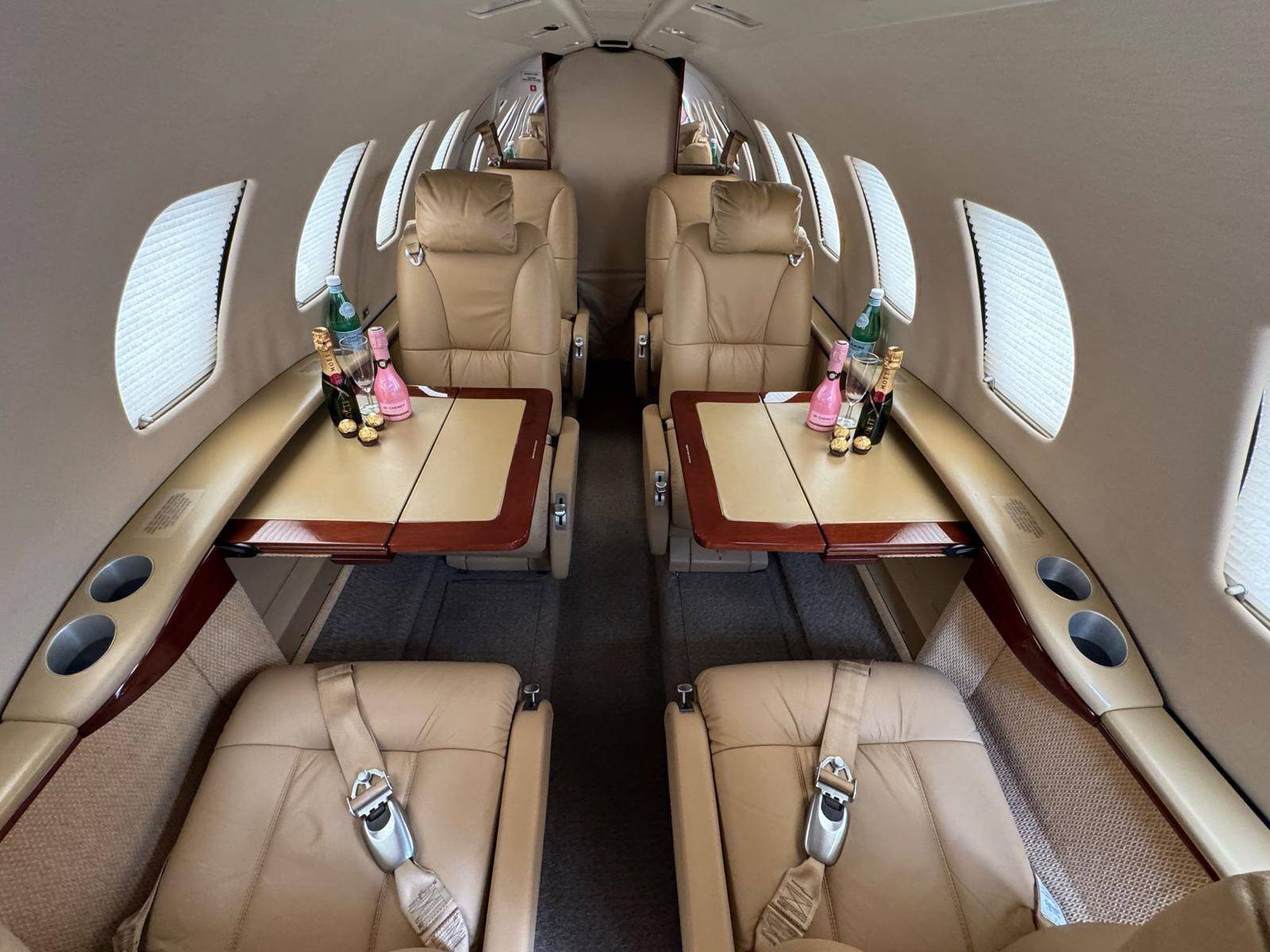 Просторная, хорошо освещенная каюта CJ2+ (длиннее чем кабина CJ1+ на 0.91 м) с передовой системой звукоизоляции, выполнена в новом стиле с использованием более дорогих и высококачественных материалов для отделки, ровный пол имеет углубление для удобного прохода и размещения пассажиров. В салоне самолета расположены 6 кресел, четыре из которых напротив друг-друга, удобные столики могут аккуратно складываться в боковые стенки салона, когда вы готовы отложить работу и отдохнуть. Citation CJ2+ имеет типичную компоновку малых бизнес-джетов, в салоне есть только самое необходимое для непродолжительного рейса, небольшая туалетная комната и гардероб расположены в задней части салона, багажное отделение находиться в хвостовой части самолета и не доступно из салона во время полета.