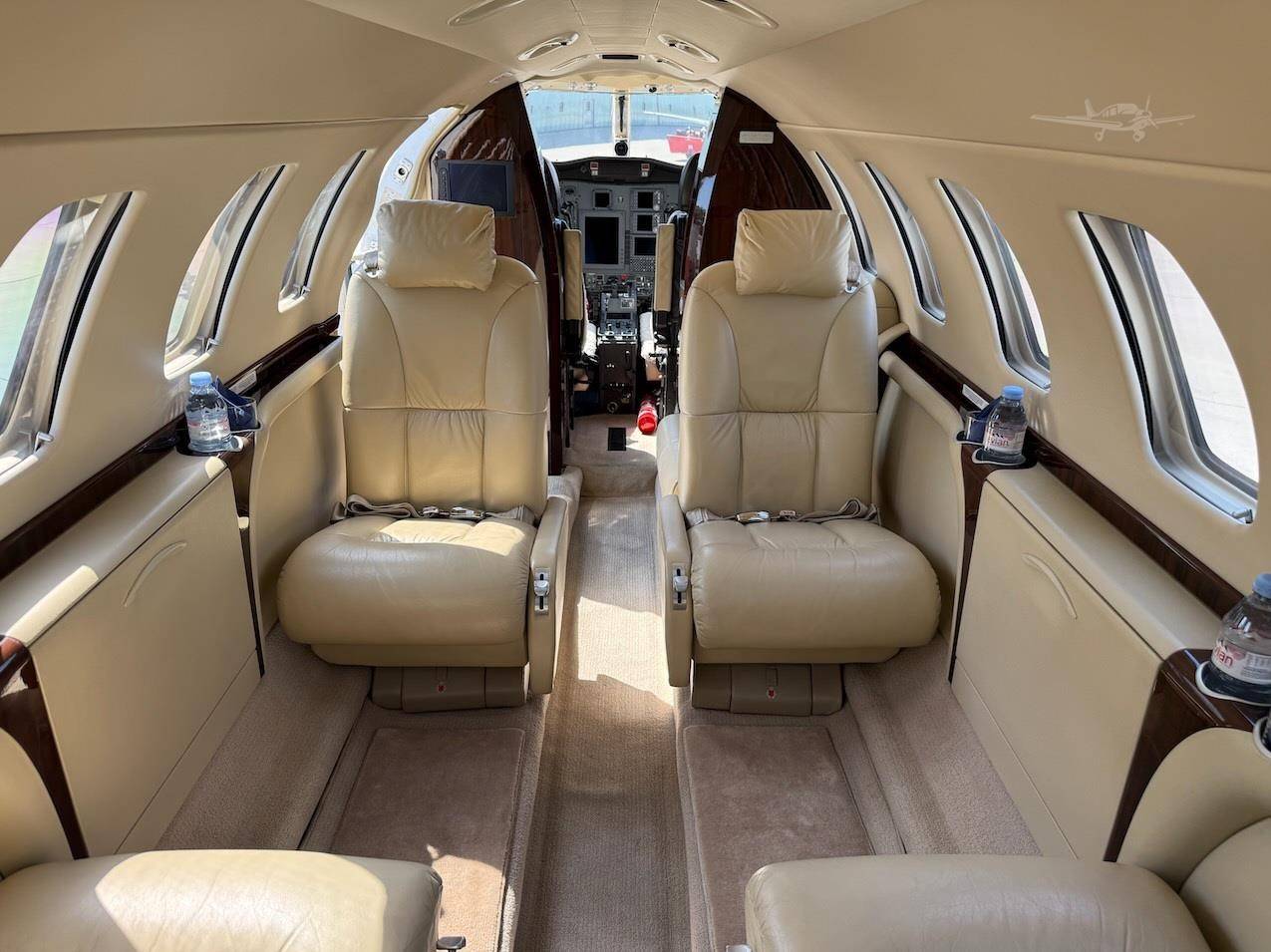 В сущности, относительно других моделей CJ изменяется только длина салона, которая у CJ3 на 64 см больше, чем у CJ2+, и на 50 см меньше, чем у CJ4. Что же касается оснащения, то здесь все почти в точности повторяет интерьеры джетов этой линейки. До шести пассажиров размещаются в салоне с сечением 1,47 на 1,45 м, но по сравнению с CJ2+ у них остается больше пространства для ног, чуть лучше здесь оборудован бар, а в хвосте чуть больше места для багажа — там же, где и располагается небольшой туалет, который отгораживается занавеской. Новая концепция дизайна салона Cessna и система управления Clairity на моделях CJ пока не появились.