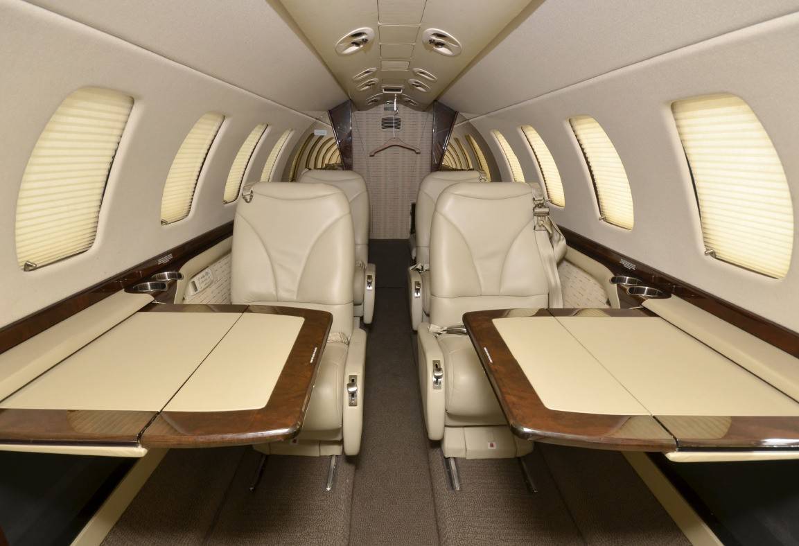 В сущности, относительно других моделей CJ изменяется только длина салона, которая у CJ3 на 64 см больше, чем у CJ2+, и на 50 см меньше, чем у CJ4. Что же касается оснащения, то здесь все почти в точности повторяет интерьеры джетов этой линейки. До шести пассажиров размещаются в салоне с сечением 1,47 на 1,45 м, но по сравнению с CJ2+ у них остается больше пространства для ног, чуть лучше здесь оборудован бар, а в хвосте чуть больше места для багажа — там же, где и располагается небольшой туалет, который отгораживается занавеской. Новая концепция дизайна салона Cessna и система управления Clairity на моделях CJ пока не появились.