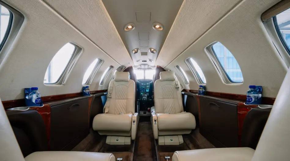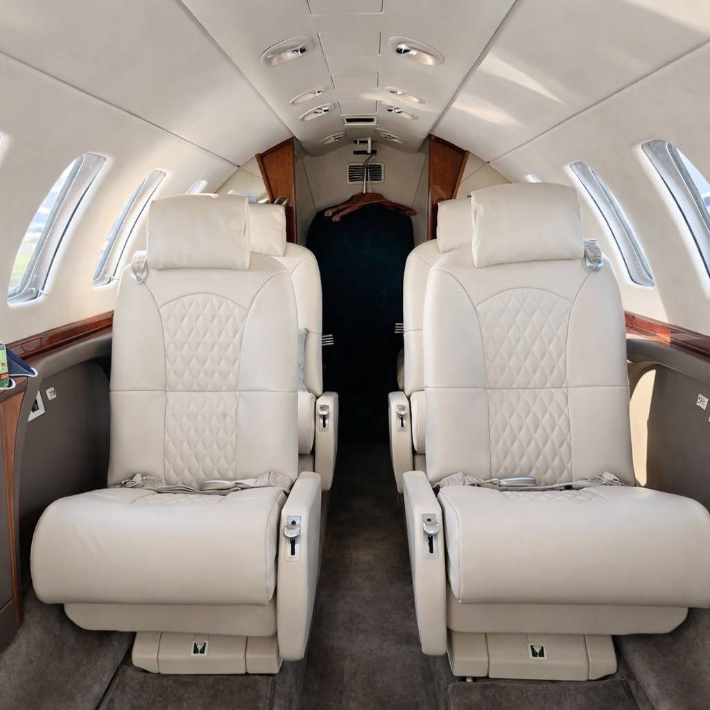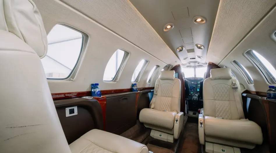 В сущности, относительно других моделей CJ изменяется только длина салона, которая у CJ3 на 64 см больше, чем у CJ2+, и на 50 см меньше, чем у CJ4. Что же касается оснащения, то здесь все почти в точности повторяет интерьеры джетов этой линейки. До шести пассажиров размещаются в салоне с сечением 1,47 на 1,45 м, но по сравнению с CJ2+ у них остается больше пространства для ног, чуть лучше здесь оборудован бар, а в хвосте чуть больше места для багажа — там же, где и располагается небольшой туалет, который отгораживается занавеской. Новая концепция дизайна салона Cessna и система управления Clairity на моделях CJ пока не появились.