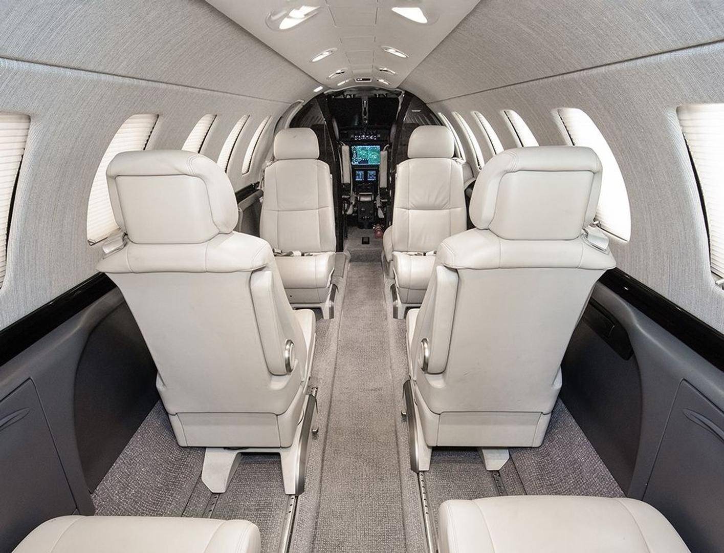 В сущности, относительно других моделей CJ изменяется только длина салона, которая у CJ3 на 64 см больше, чем у CJ2+, и на 50 см меньше, чем у CJ4. Что же касается оснащения, то здесь все почти в точности повторяет интерьеры джетов этой линейки. До шести пассажиров размещаются в салоне с сечением 1,47 на 1,45 м, но по сравнению с CJ2+ у них остается больше пространства для ног, чуть лучше здесь оборудован бар, а в хвосте чуть больше места для багажа — там же, где и располагается небольшой туалет, который отгораживается занавеской. Новая концепция дизайна салона Cessna и система управления Clairity на моделях CJ пока не появились.
