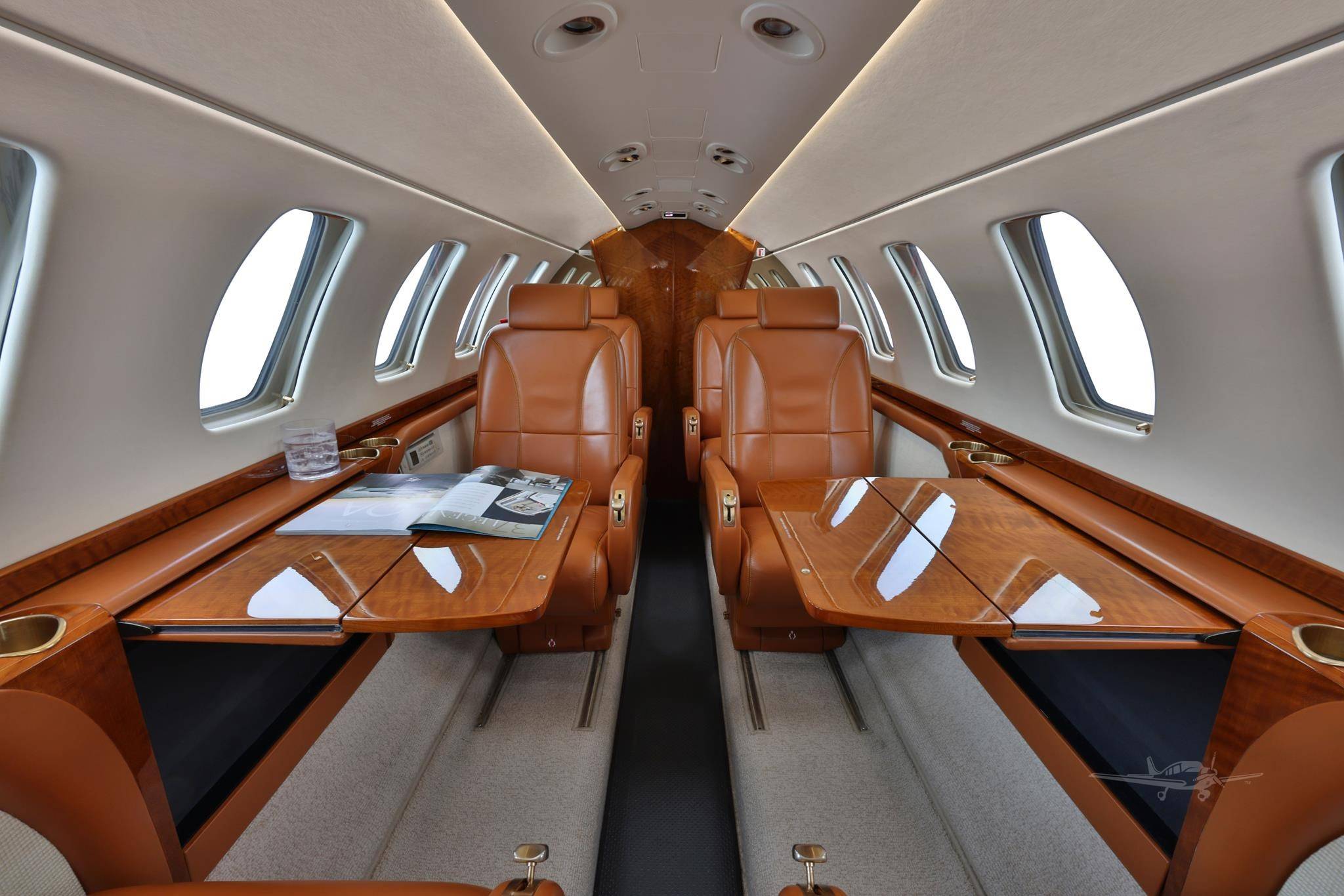 В сущности, относительно других моделей CJ изменяется только длина салона, которая у CJ3 на 64 см больше, чем у CJ2+, и на 50 см меньше, чем у CJ4. Что же касается оснащения, то здесь все почти в точности повторяет интерьеры джетов этой линейки. До шести пассажиров размещаются в салоне с сечением 1,47 на 1,45 м, но по сравнению с CJ2+ у них остается больше пространства для ног, чуть лучше здесь оборудован бар, а в хвосте чуть больше места для багажа — там же, где и располагается небольшой туалет, который отгораживается занавеской. Новая концепция дизайна салона Cessna и система управления Clairity на моделях CJ пока не появились.