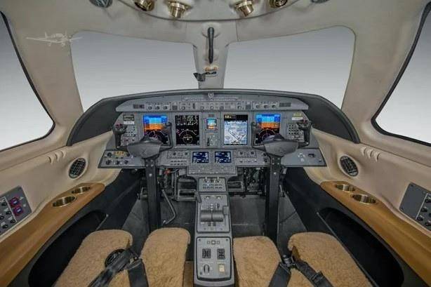 Небольшая бортовая кухня находится рядом со входом в самолет, напротив дивана. Туалетная комната, расположенная в задней части самолета, делит пространство с гардеробом. Изолированное багажное отделение находится в хвостовой части и недоступно из салона.