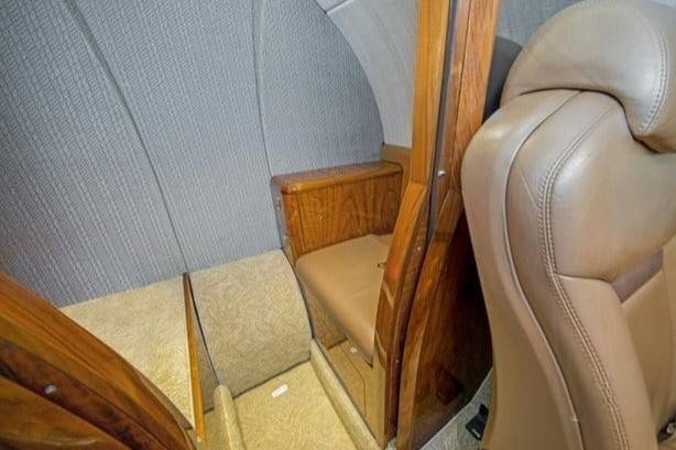 Небольшая бортовая кухня находится рядом со входом в самолет, напротив дивана. Туалетная комната, расположенная в задней части самолета, делит пространство с гардеробом. Изолированное багажное отделение находится в хвостовой части и недоступно из салона.
