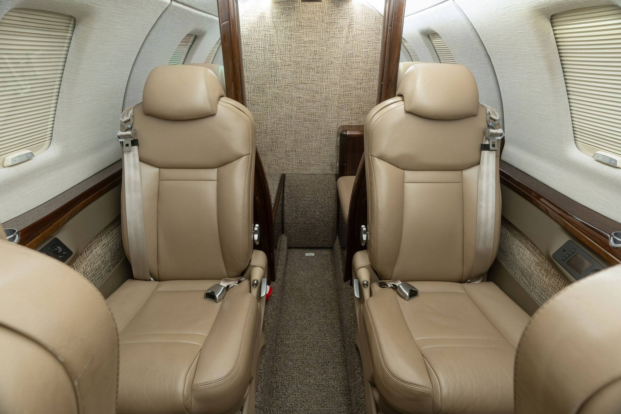 Небольшая бортовая кухня находится рядом со входом в самолет, напротив дивана. Туалетная комната, расположенная в задней части самолета, делит пространство с гардеробом. Изолированное багажное отделение находится в хвостовой части и недоступно из салона.