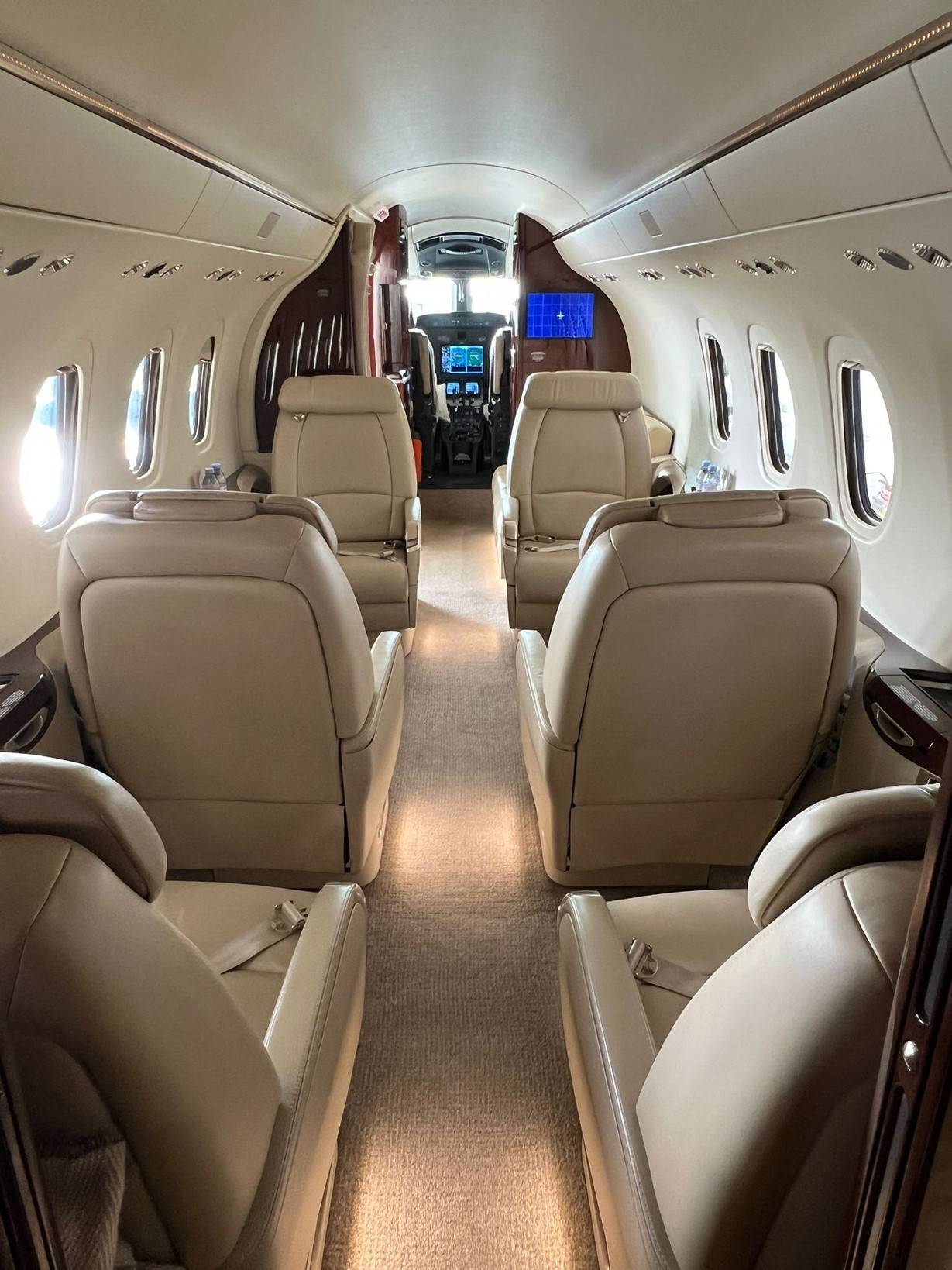 В наиболее комфортной конфигурации предусмотрено шесть пассажирских мест. Благодаря салону высотой 1,83 м большинство сможет перемещаться в самолете в полный рост. Заслуживает внимания и ровный пол без траншеи между креслами, что указывает на принадлежность этого сечения фюзеляжа к классу выше. Новый подход Cessna к дизайну интерьеров удивляет сочетанием футуристичности, минимализма и функциональности без ущерба достоинству и изысканности. Удобные кресла собственной разработки компании, изящный диванчик при входе, а также небольшие ниши для хранения телефонов и планшетных компьютеров обращают на себя внимание продуманностью и заботой о комфорте пассажиров.