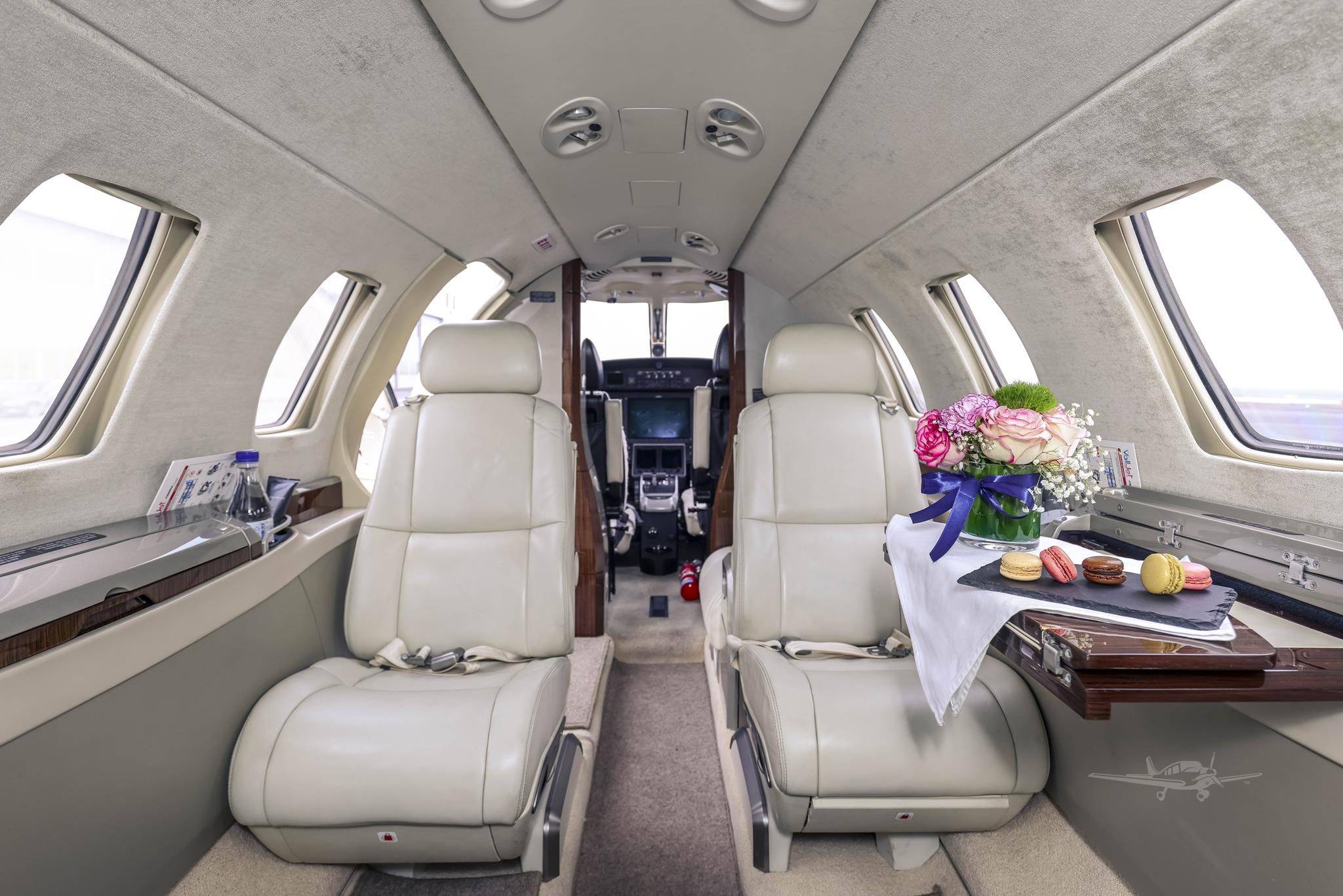 Максимальная компоновка Citation M2 рассчитана на 5 пассажиров, однако для наибольшего комфорта следует рассматривать четырехместные варианты. Еще один пассажир может занять место второго пилота.