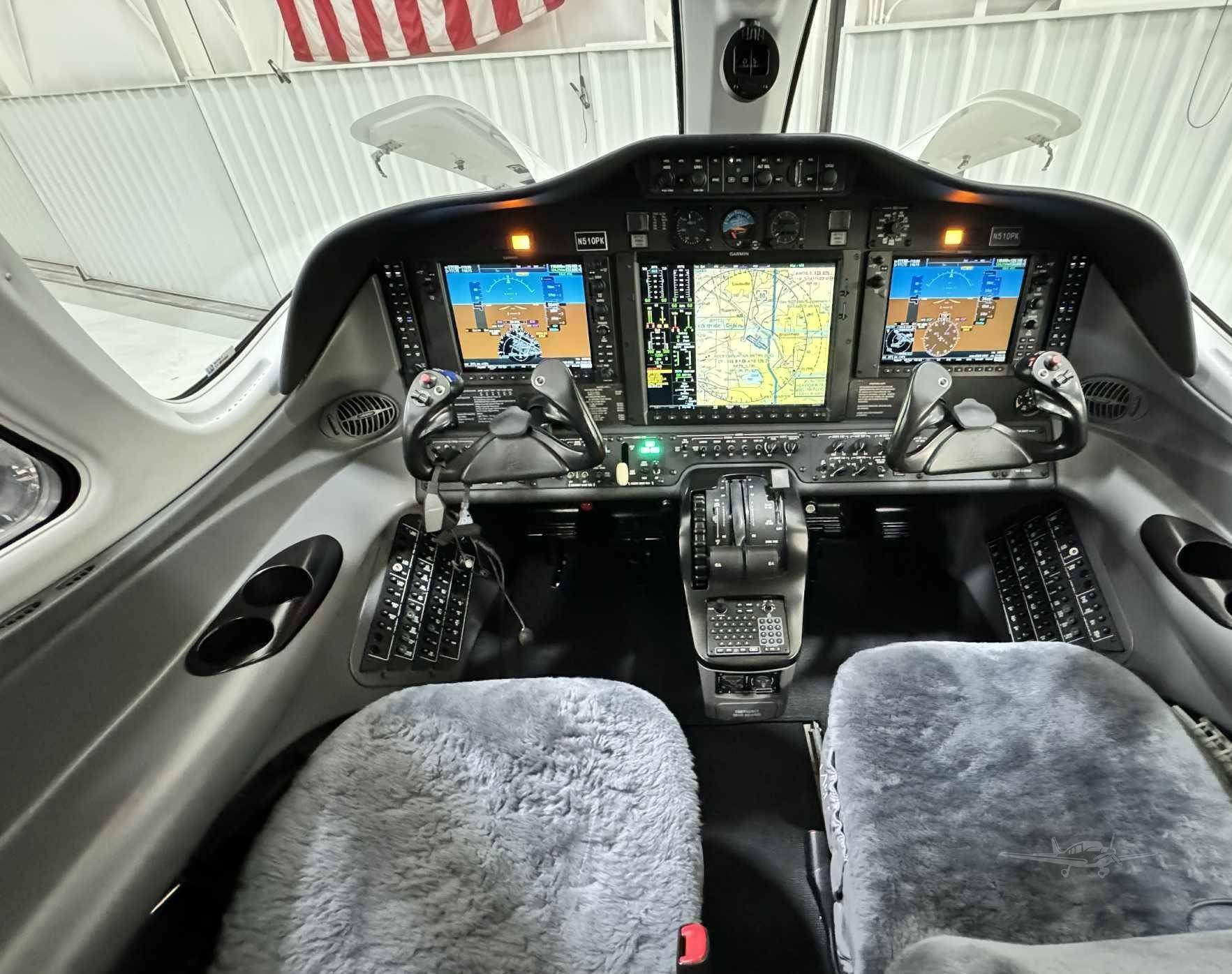 Представьте себе летающий бизнес-седан — и у вас будет некоторое представление о салоне Cessna Mustang. Лаконичный и функциональный интерьер бизнес-джета подходит и для деловых переговоров, и для отдыха. На борту Mustang есть все необходимое для непродолжительных перелетов. Здесь размещается максимум пять пассажирских кресел, одно из которых расположено за кабиной пилотов и совмещено с функцией биотуалета. В идеале, летают вчетвером, а еще один пассажир может занять место второго пилота, так как самолет сертифицирован для управления одним.