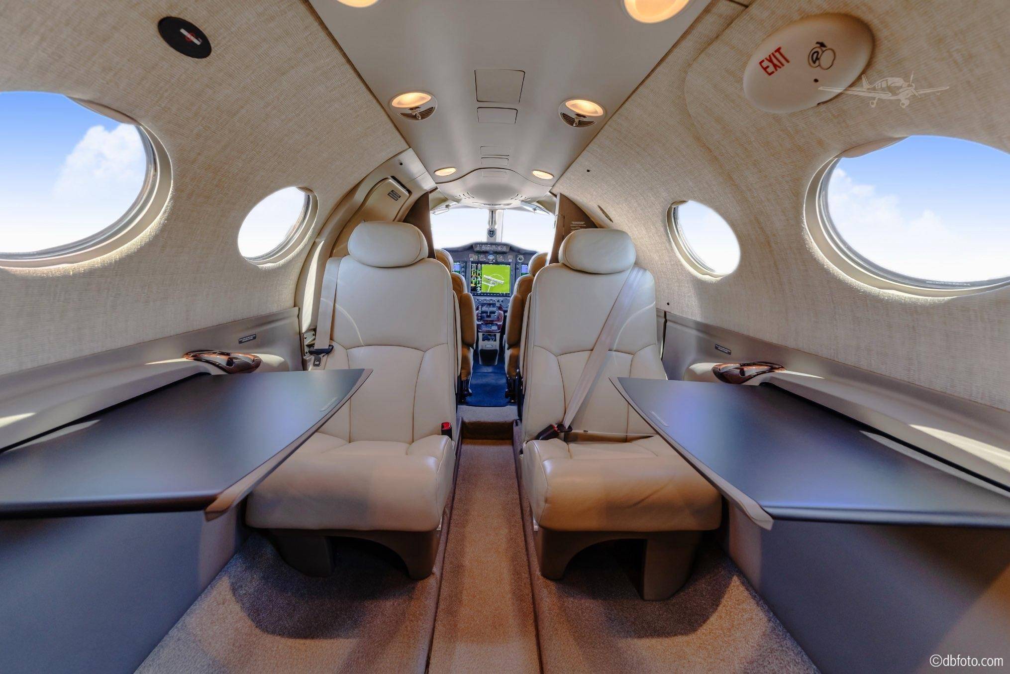 Представьте себе летающий бизнес-седан — и у вас будет некоторое представление о салоне Cessna Mustang. Лаконичный и функциональный интерьер бизнес-джета подходит и для деловых переговоров, и для отдыха. На борту Mustang есть все необходимое для непродолжительных перелетов. Здесь размещается максимум пять пассажирских кресел, одно из которых расположено за кабиной пилотов и совмещено с функцией биотуалета. В идеале, летают вчетвером, а еще один пассажир может занять место второго пилота, так как самолет сертифицирован для управления одним.