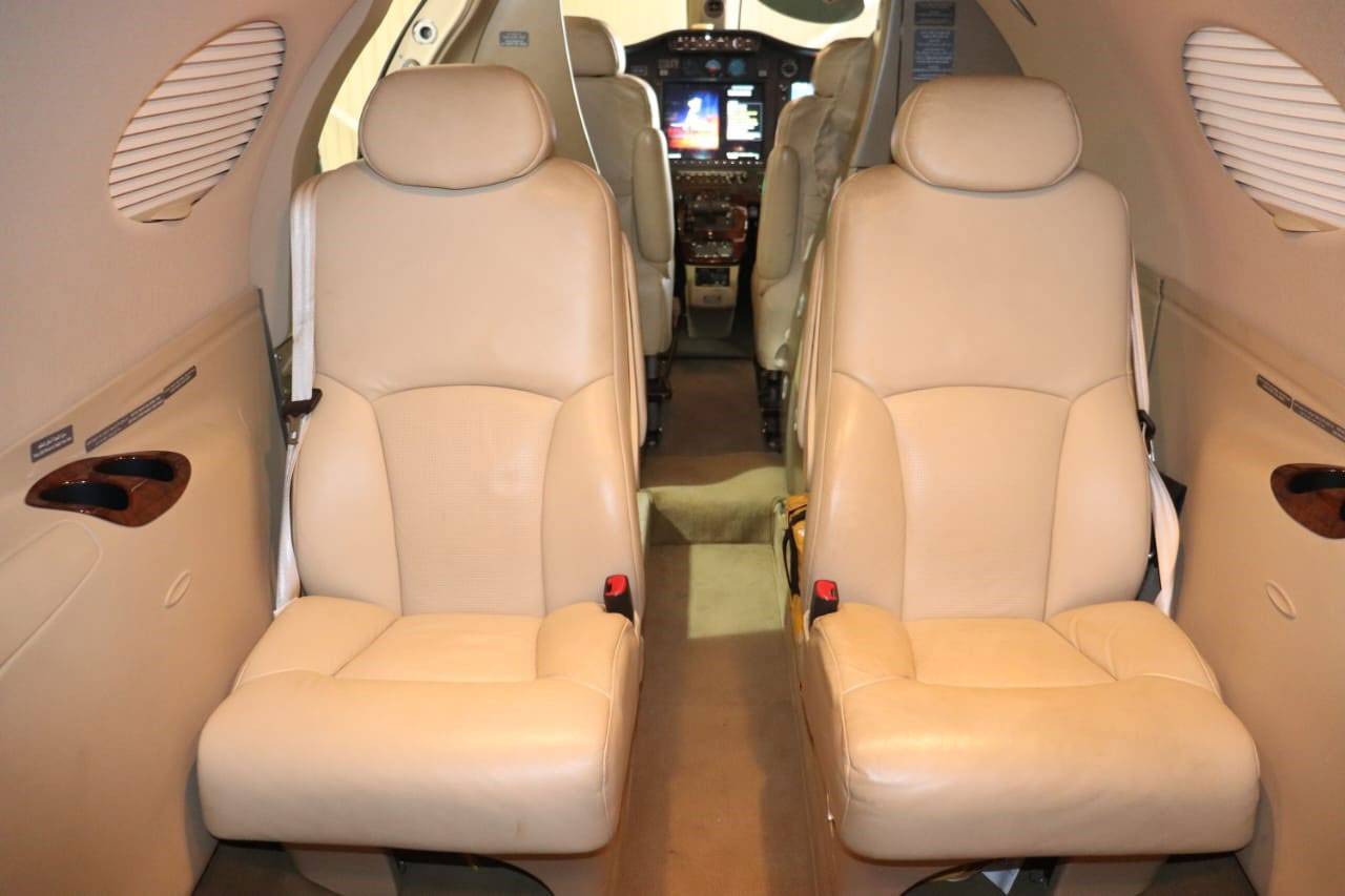 Представьте себе летающий бизнес-седан — и у вас будет некоторое представление о салоне Cessna Mustang. Лаконичный и функциональный интерьер бизнес-джета подходит и для деловых переговоров, и для отдыха. На борту Mustang есть все необходимое для непродолжительных перелетов. Здесь размещается максимум пять пассажирских кресел, одно из которых расположено за кабиной пилотов и совмещено с функцией биотуалета. В идеале, летают вчетвером, а еще один пассажир может занять место второго пилота, так как самолет сертифицирован для управления одним.
