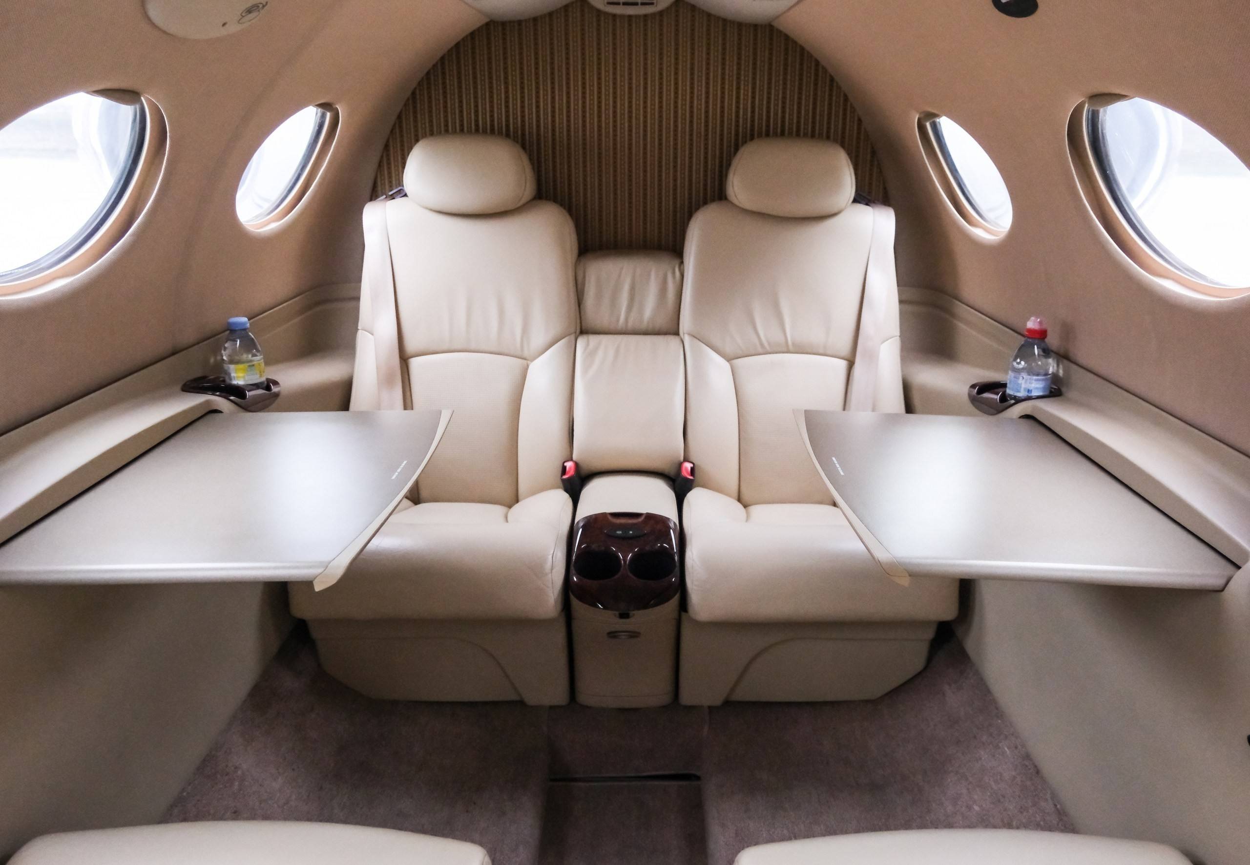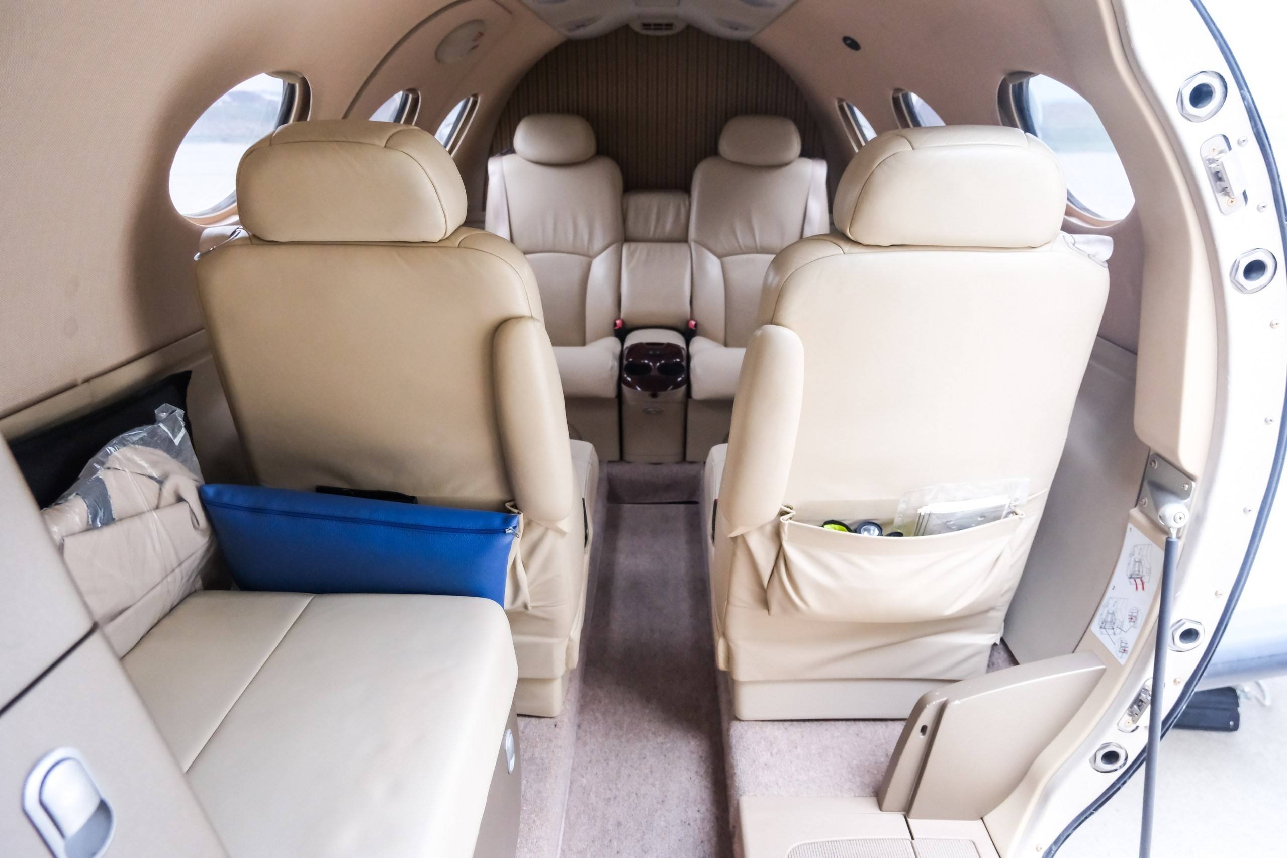 Представьте себе летающий бизнес-седан — и у вас будет некоторое представление о салоне Cessna Mustang. Лаконичный и функциональный интерьер бизнес-джета подходит и для деловых переговоров, и для отдыха. На борту Mustang есть все необходимое для непродолжительных перелетов. Здесь размещается максимум пять пассажирских кресел, одно из которых расположено за кабиной пилотов и совмещено с функцией биотуалета. В идеале, летают вчетвером, а еще один пассажир может занять место второго пилота, так как самолет сертифицирован для управления одним.