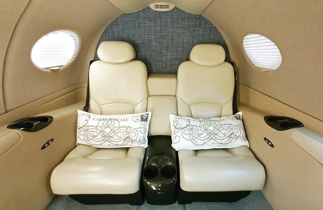 Представьте себе летающий бизнес-седан — и у вас будет некоторое представление о салоне Cessna Mustang. Лаконичный и функциональный интерьер бизнес-джета подходит и для деловых переговоров, и для отдыха. На борту Mustang есть все необходимое для непродолжительных перелетов. Здесь размещается максимум пять пассажирских кресел, одно из которых расположено за кабиной пилотов и совмещено с функцией биотуалета. В идеале, летают вчетвером, а еще один пассажир может занять место второго пилота, так как самолет сертифицирован для управления одним.
