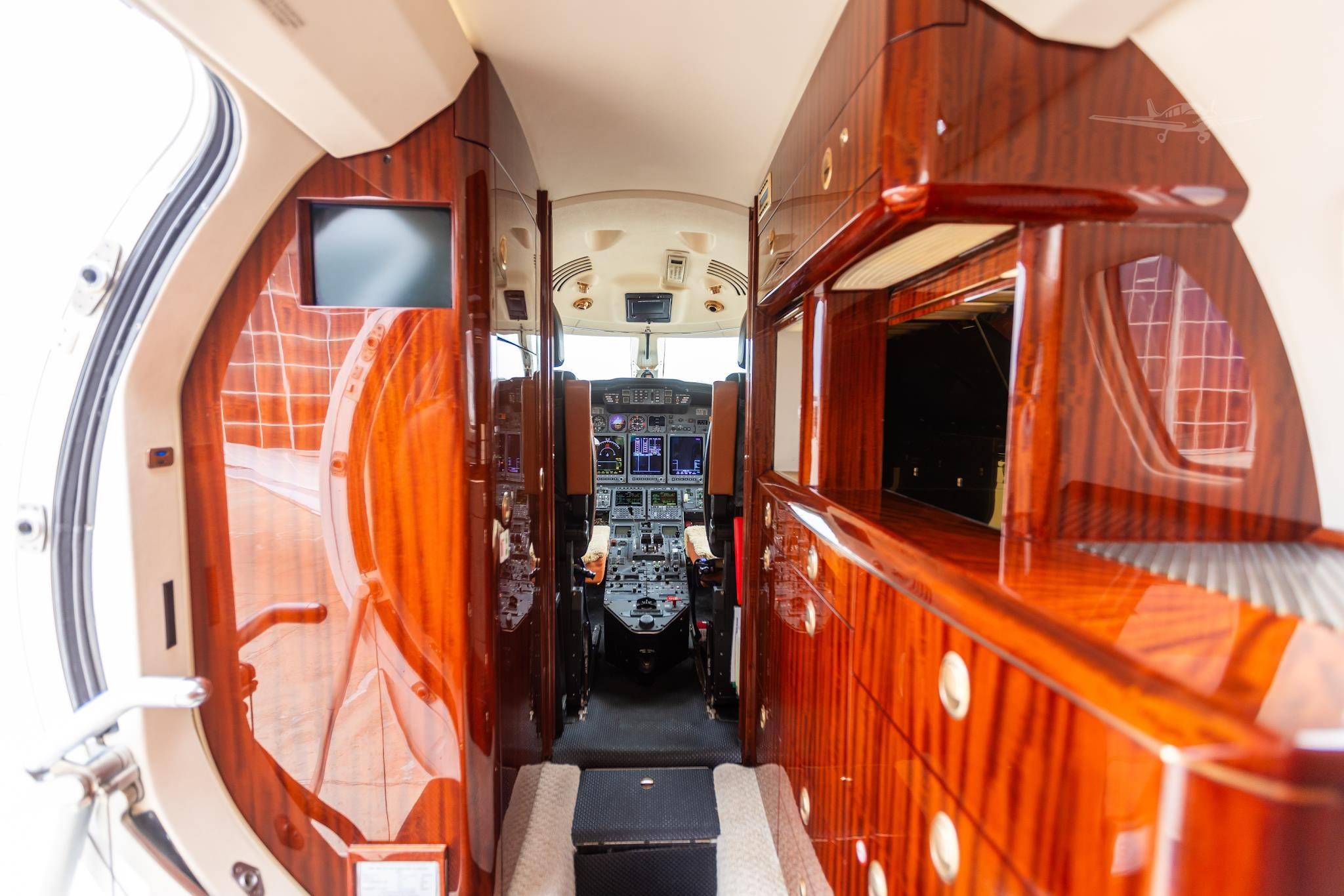 Самолет оснащен спутниковым телефоном, доступом в Интернет, системой Airshow, предоставляющей информацию о полете в режиме реального времени, стереосистемой, ЖК-мониторами возле каждого кресла и CD/DVD-проигрывателем. Вместительное багажное отделение находится в хвостовой части самолета и изолировано от салона.