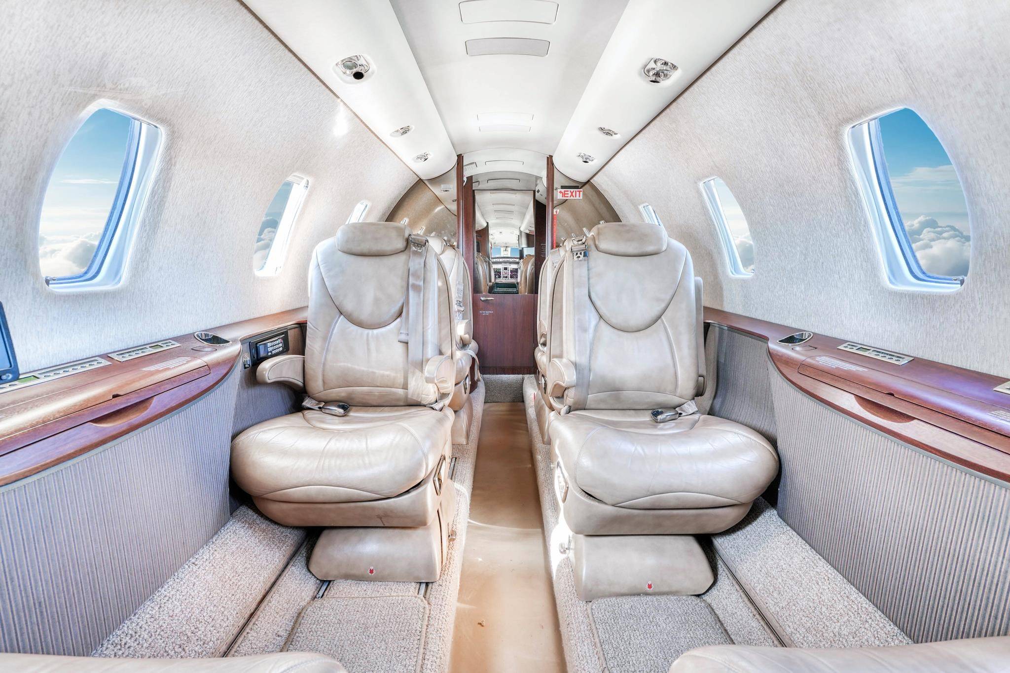 На борту предусмотрено отдельное место для стюардессы. Багажный отсек изолирован и расположен в хвостовой части самолета. Интерьер пока не удостоился переосмысления, как на некоторых других моделях Cessna, и по-прежнему олицетворяет собой сдержанную классику авиационного дизайна. То же касается систем связи и развлечений: есть все необходимое, но новый комплекс Clairity на других моделях ушел далеко вперед.