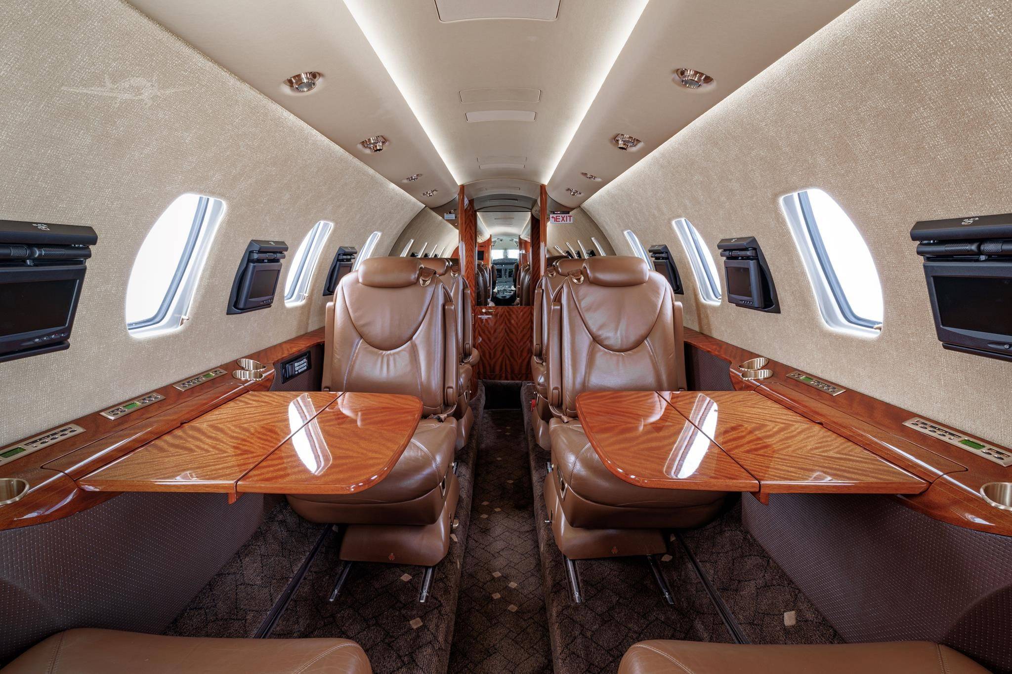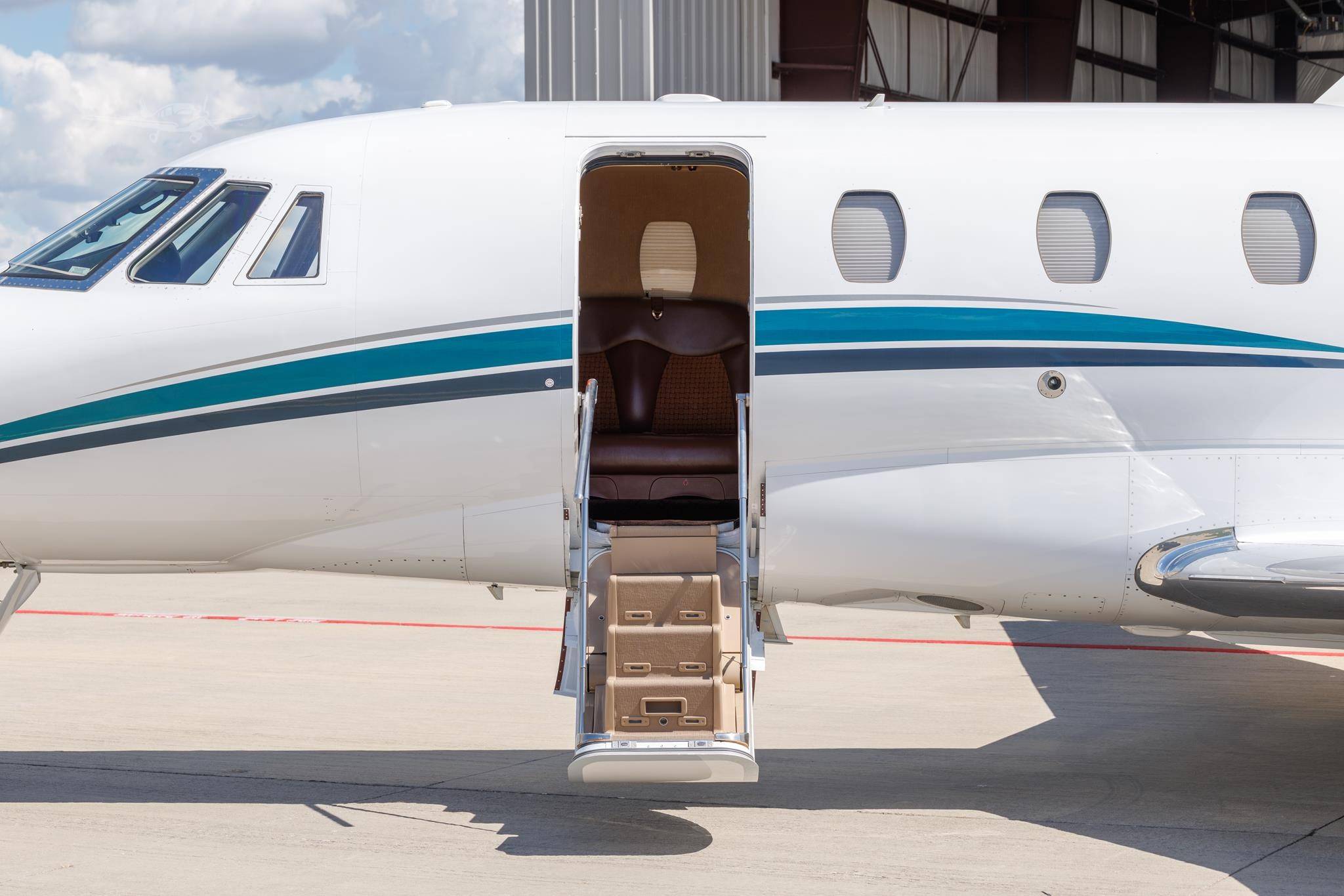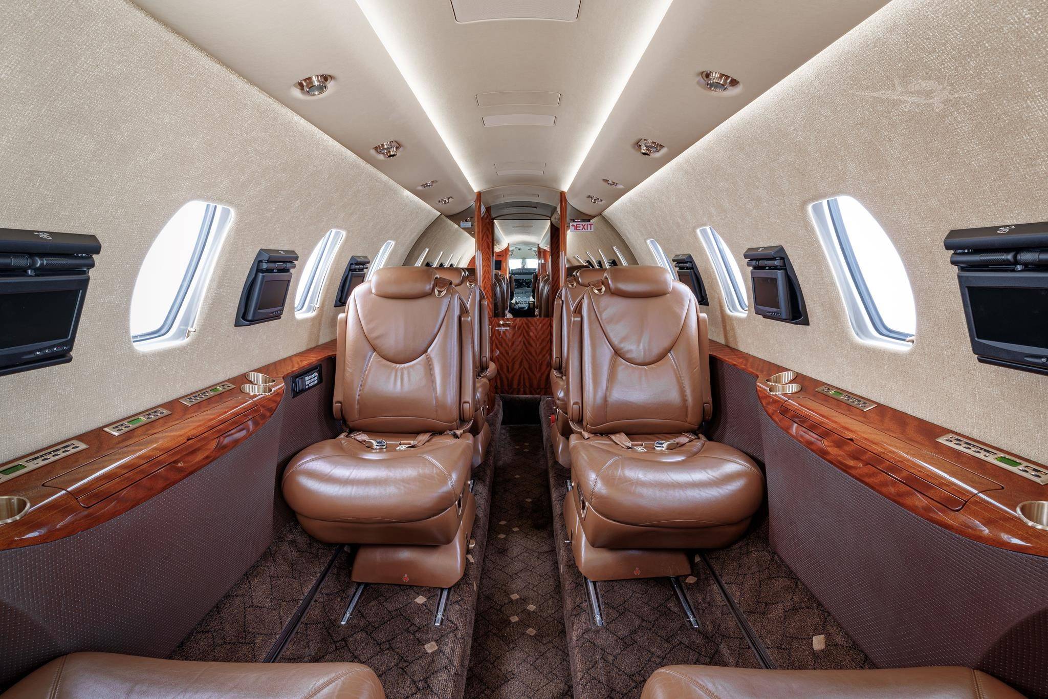 На борту предусмотрено отдельное место для стюардессы. Багажный отсек изолирован и расположен в хвостовой части самолета. Интерьер пока не удостоился переосмысления, как на некоторых других моделях Cessna, и по-прежнему олицетворяет собой сдержанную классику авиационного дизайна. То же касается систем связи и развлечений: есть все необходимое, но новый комплекс Clairity на других моделях ушел далеко вперед.