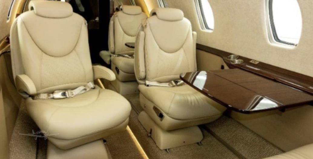 На борту предусмотрено отдельное место для стюардессы. Багажный отсек изолирован и расположен в хвостовой части самолета. Интерьер пока не удостоился переосмысления, как на некоторых других моделях Cessna, и по-прежнему олицетворяет собой сдержанную классику авиационного дизайна. То же касается систем связи и развлечений: есть все необходимое, но новый комплекс Clairity на других моделях ушел далеко вперед.