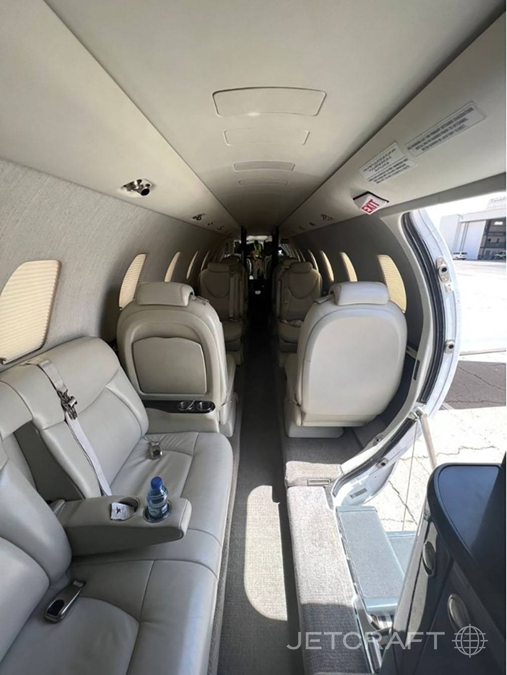 На борту предусмотрено отдельное место для стюардессы. Багажный отсек изолирован и расположен в хвостовой части самолета. Интерьер пока не удостоился переосмысления, как на некоторых других моделях Cessna, и по-прежнему олицетворяет собой сдержанную классику авиационного дизайна. То же касается систем связи и развлечений: есть все необходимое, но новый комплекс Clairity на других моделях ушел далеко вперед.