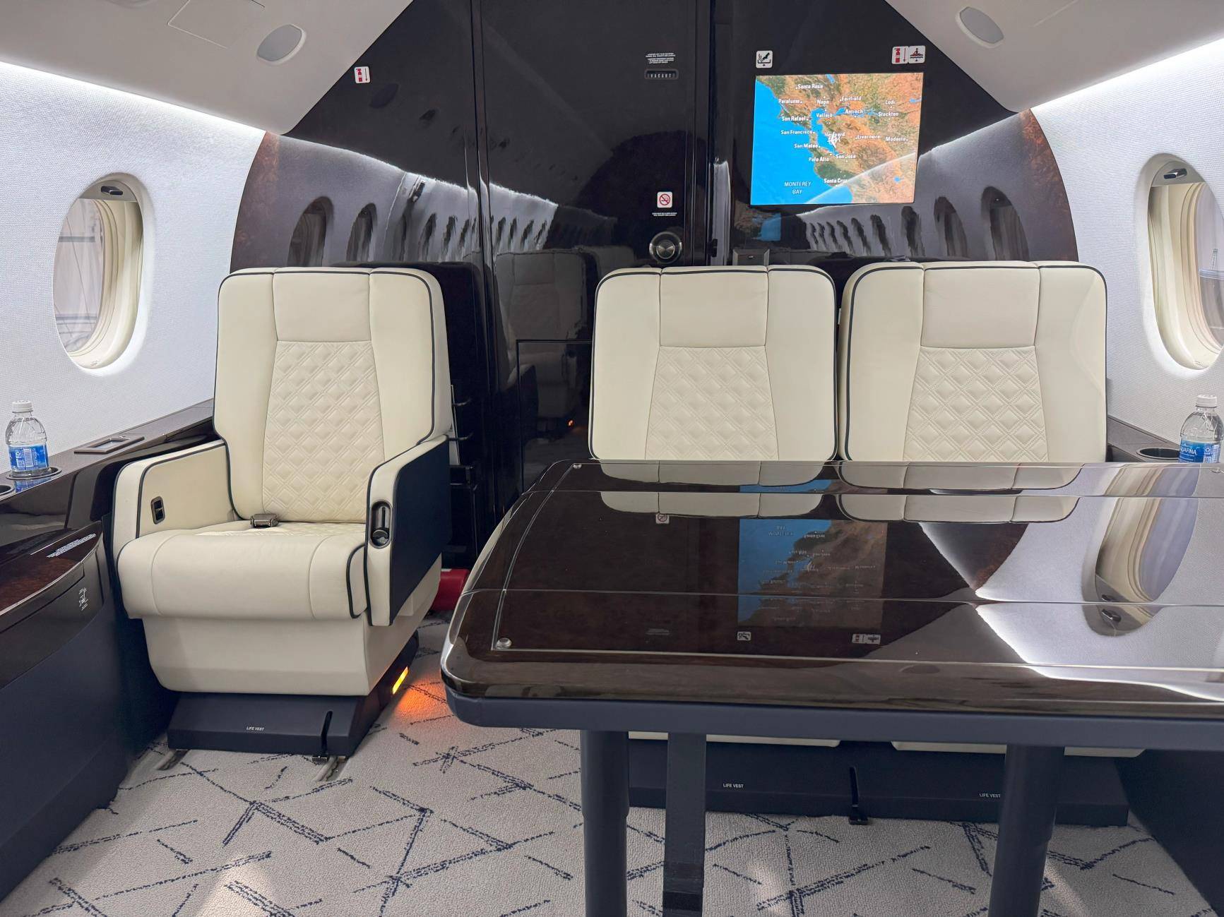Салон Falcon 2000LXS позволит с комфортом разместить до 10 человек, если предстоит длительный межконтинентальный полет. Благодаря 18 большим окнам перед каждым пассажиром открывается панорамный вид. Кресла оборудованы откидными спинками, подголовниками, регулируемыми подлокотниками и раскладываются на 180 градусов, что дает возможность насладиться полноценным отдыхом.