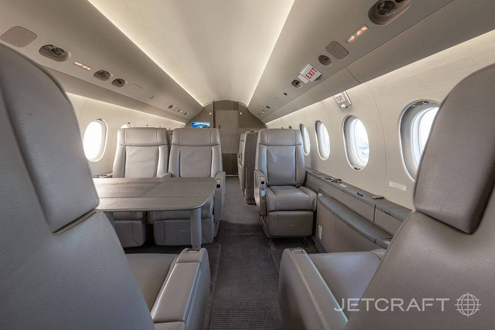 Салон этого самолета больше и комфортнее среднеразмерных бизнес-джетов. Пространство разделено на две удобные отдельные зоны, а благодаря передовой звукоизоляции и специальным звукопоглощающим узлам крепления двигателя в салоне невероятно тихо. Внутренняя отделка выполнена