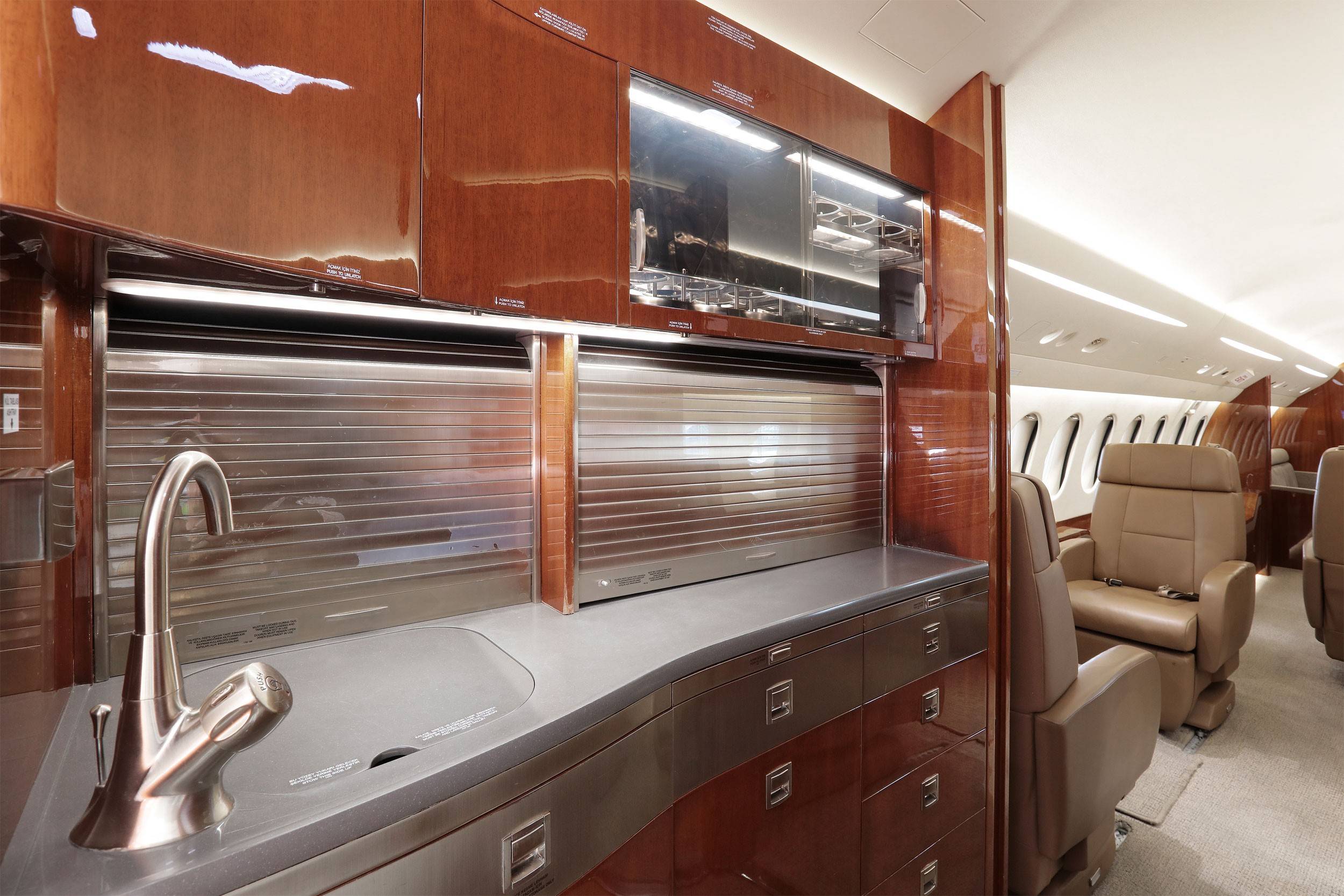 Просторный и высокий салон, созданный для длительных 13-часовых полетов, позволяет стоять в полный рост. Falcon 7X дает возможность идеально организовать работу и отдых. Комфортная длина и ширина салона обеспечивают достаточно места, чтобы вы могли пройтись, отдохнуть на диване или поработать, превратив заднюю часть салона в личный кабинет. Салон оснащен всеми удобствами, которые могут потребоваться при перелете на сверхдальние расстояния, включая душевую кабину в качестве опции. Новейшая интегрированная система развлечений и управления салоном Falcon Cabin HD+ с помощью инновационной оптоволоконной сети позволяет передавать аудио- и видеоконтент высокого качества по всему салону. Контролировать систему можно при помощи личного устройства Apple.