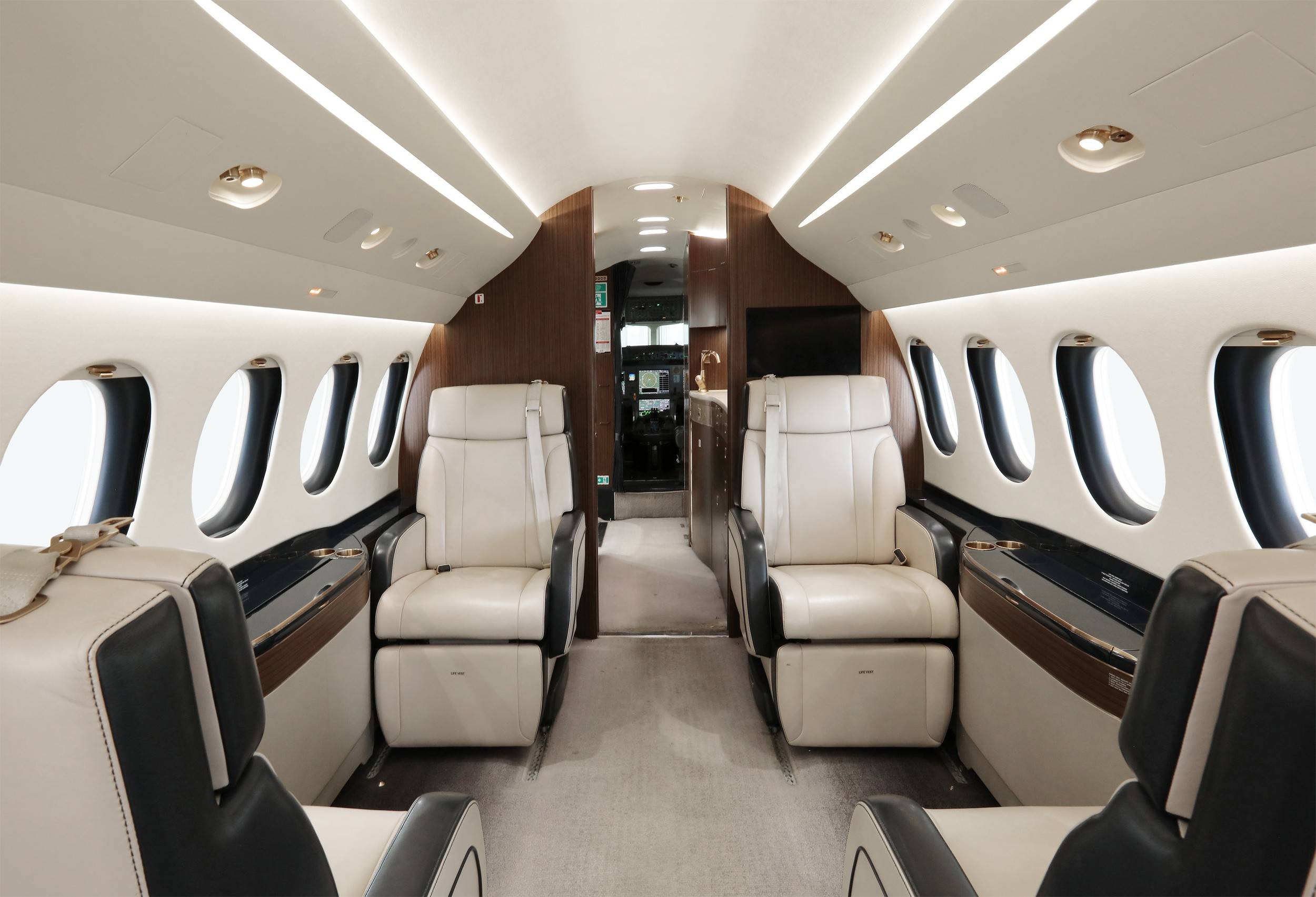 Самолет оснащен инновационной системой EASy третьего поколения, трехмерным метеолокатором и пилотажным индикатором Falcon Eye Head-Up Display, совмещающим реальную картину и синтезированное изображение. Уникальная трехдвигательная схема самолета Falcon повышает безопасность полета, особенно над водными пространствами и при взлете в горных условиях.