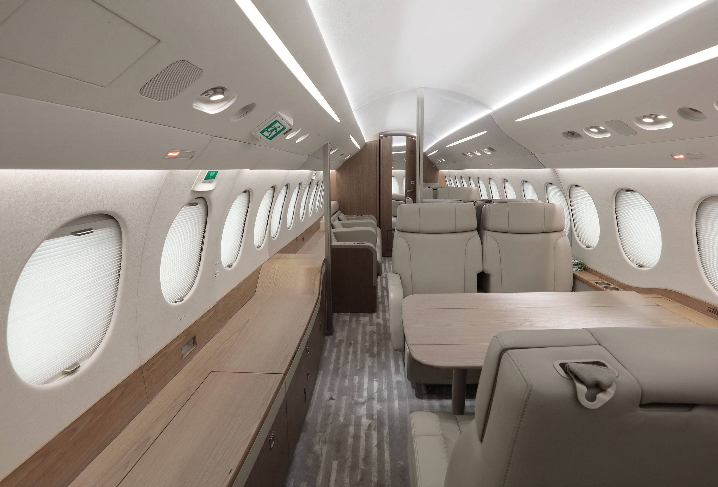 Falcon 8X — это личный пентхаус на высоте 15 000 м. Благодаря самой длинной кабине в семействе Falcon данная модель предлагает большой выбор конфигураций салона. Более 30 опций компоновки салона включают три зоны отдыха, три варианта кухни в зависимости от размера, два вида отделений для экипажа. Некоторые конфигурации предполагают наличие душевой кабины. Уровень шума на борту 8X настолько низок, что в полете можно тихо разговаривать и хорошо выспаться. Качество воздуха соответствует самым высоким стандартам, а давление в кабине обеспечивает комфорт вне зависимости от высоты полета. Быть всегда на связи позволяет новейшая интегрированная система развлечений и управления салоном. Весь ее функционал можно контролировать из любой точки салона при помощи iPad или iPhone. Данная система также позволяет следить за полетом на виртуальной карте местности, просто повернув устройство в желаемом направлении.