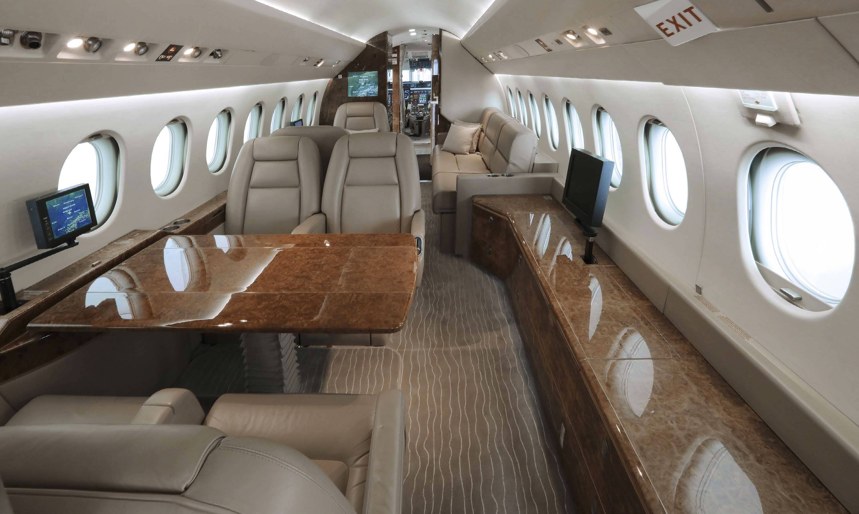 Компоновка салона позволяет перевозить до 15 пассажиров. Благодаря широкофюзеляжному салону, разделенному на 3 зоны Falcon 900EX EASy является наиболее комфортабельным воздушным судном в своей категории.